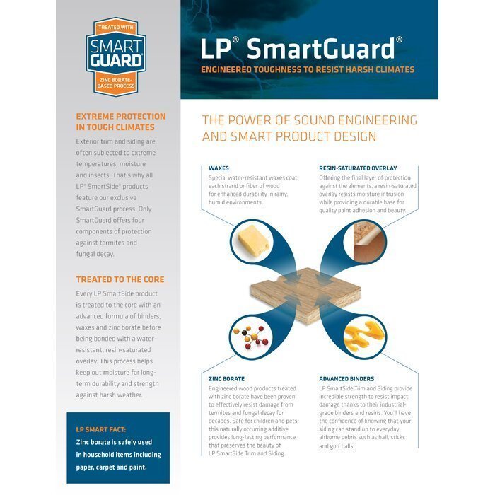 - Panneaux latéraux intelligents LP de qualité supérieure rainurés de 20,32 cm  traités pour résister à la pourriture fongique et aux infestations d’insectes.