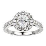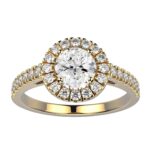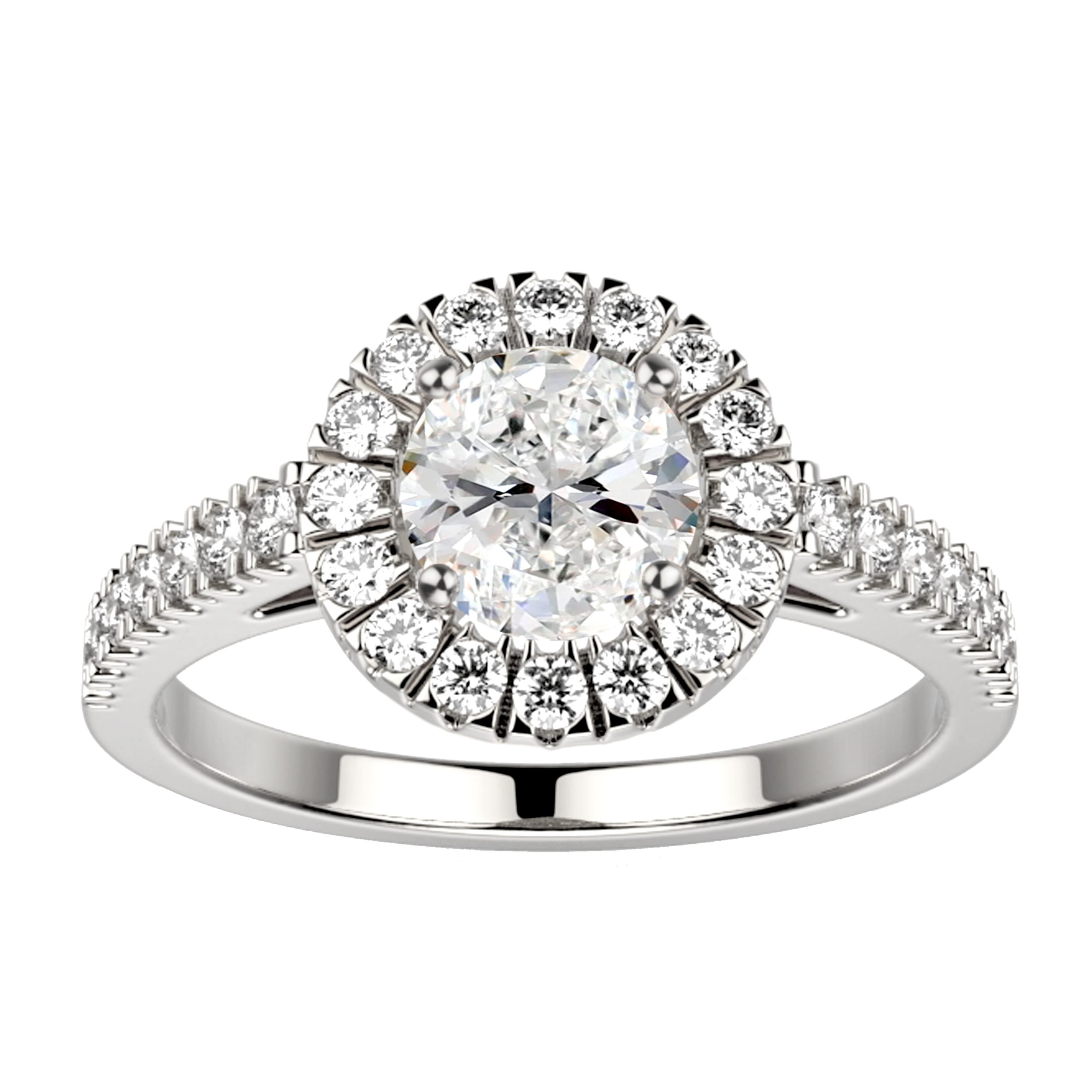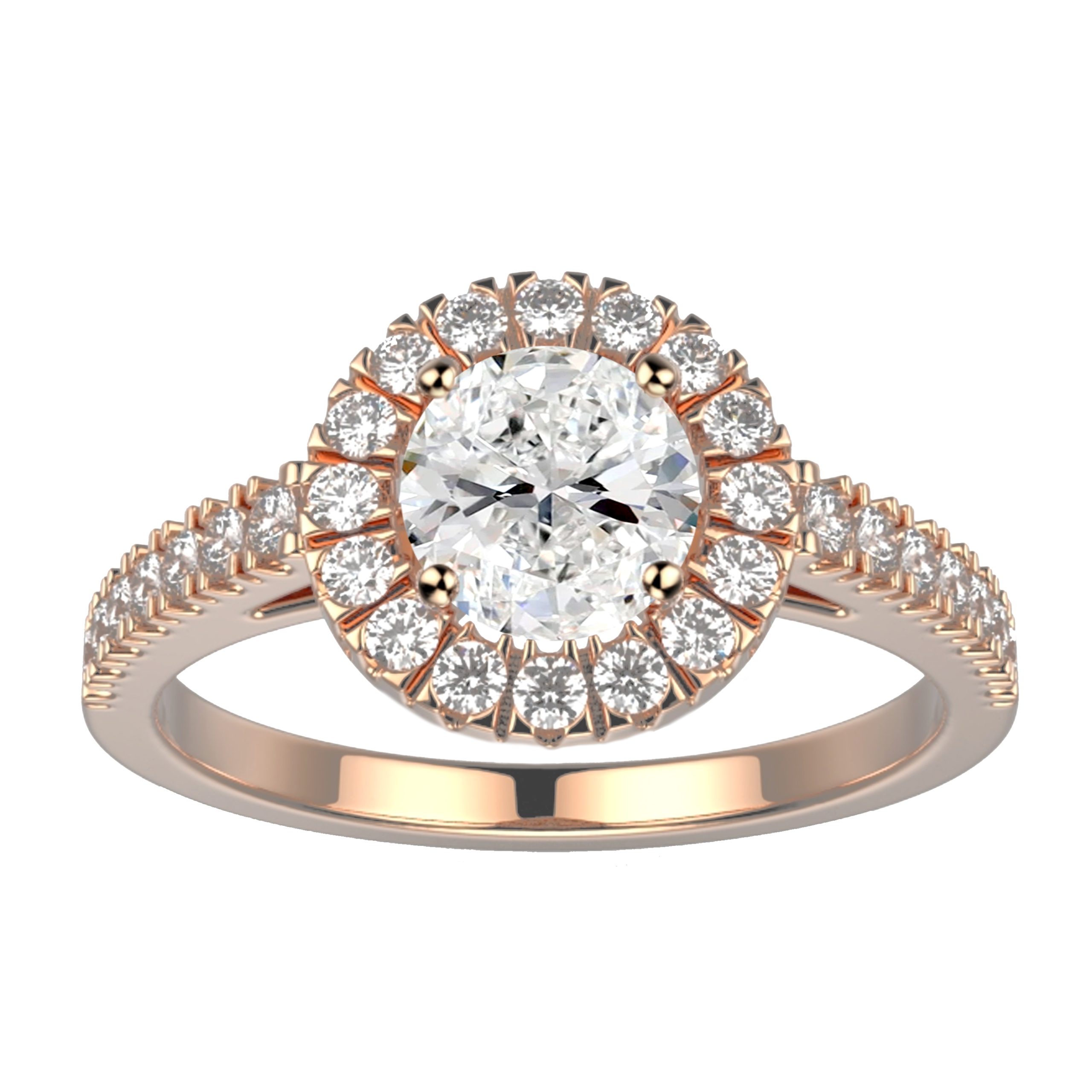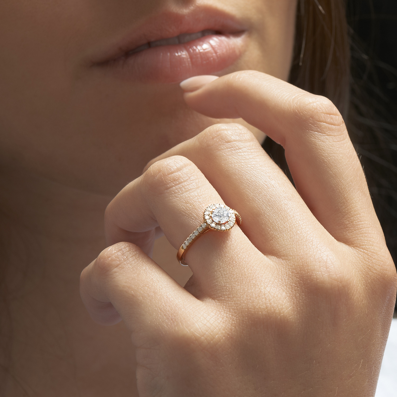 Type : ruban semi-plat double corps à palmettes avec halo et anneau pavé