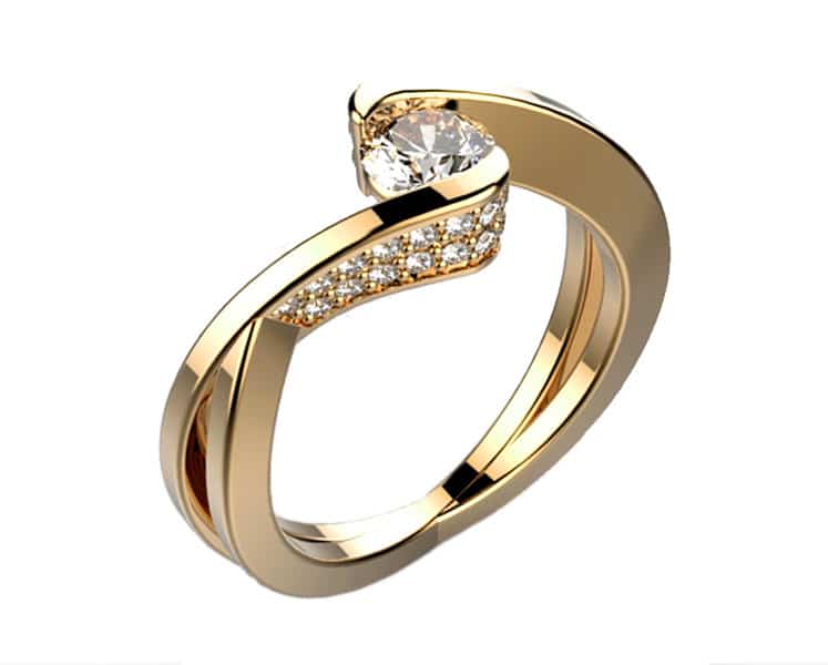 Un solitaire diamant dont la monture présente une délicate originalité avec son anneau double et pavé