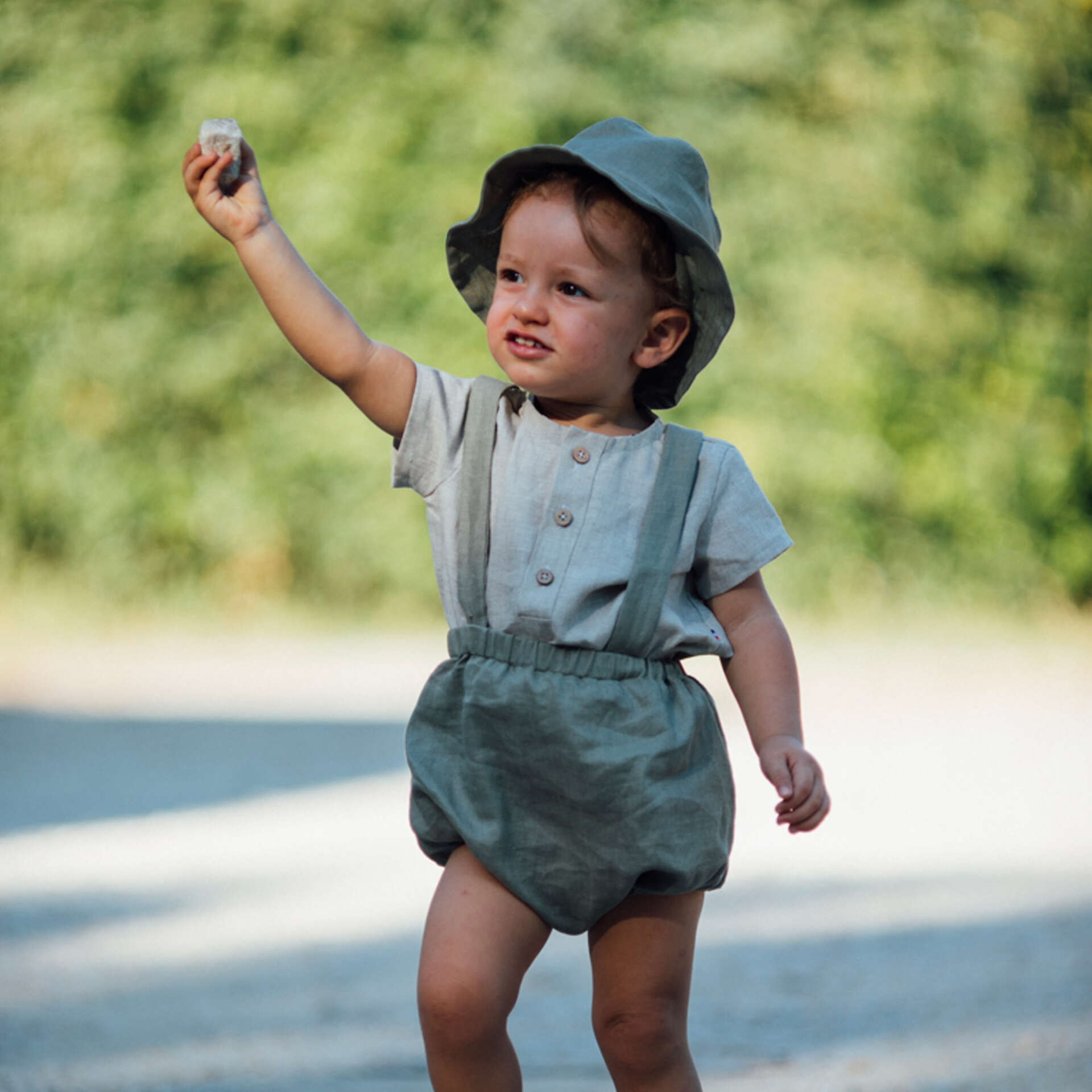 Confectionné en lin naturel 100% français, le bloomer RICIN offre une sensation de fraîcheur et de légèreté, idéale pour les journées ensoleillées. Son tissu doux et respirant assure le confort de votre bébé, tandis que sa couleur vert olive classique ajoute une touche de sophistication à son look estival.