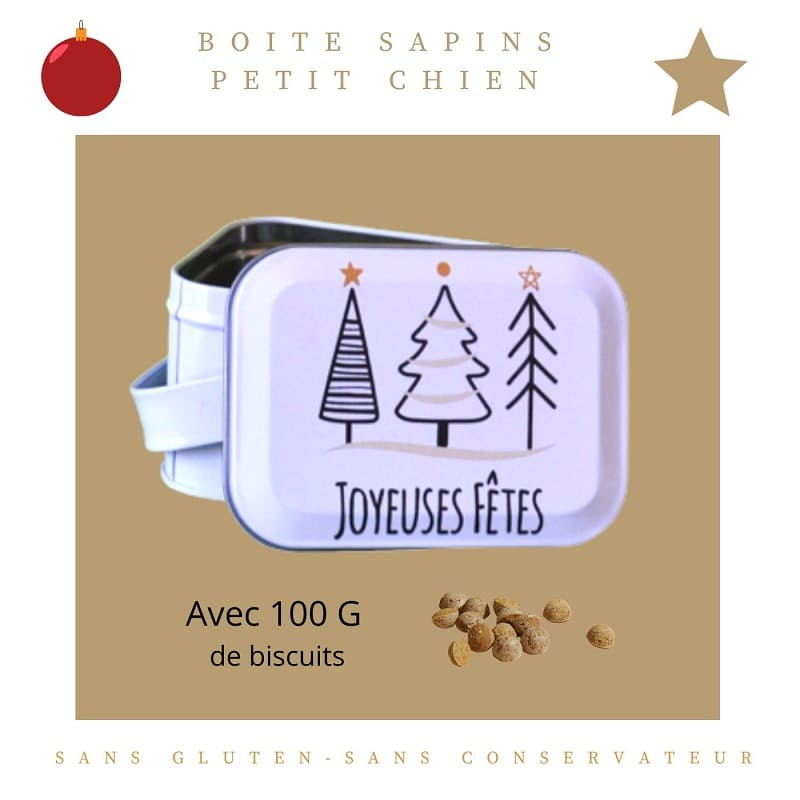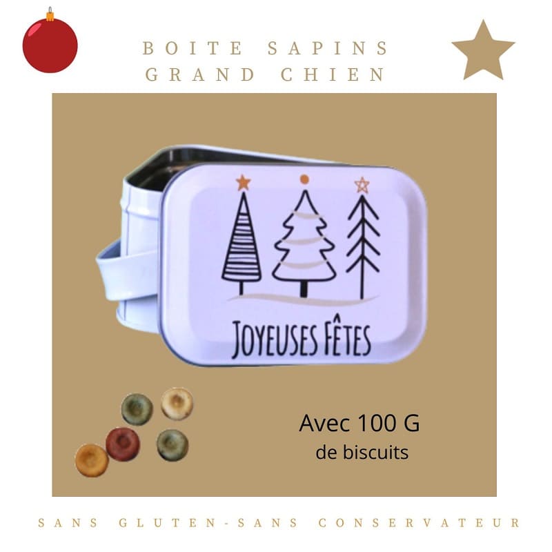 Proposée avec 100 G de biscuits Assortis , le cadeau pour votre chien à mettre au pied du salin