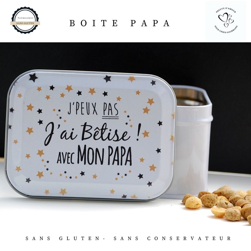 Boite cadeau » bêtise avec papa » et gourmandises naturelles pour chiens