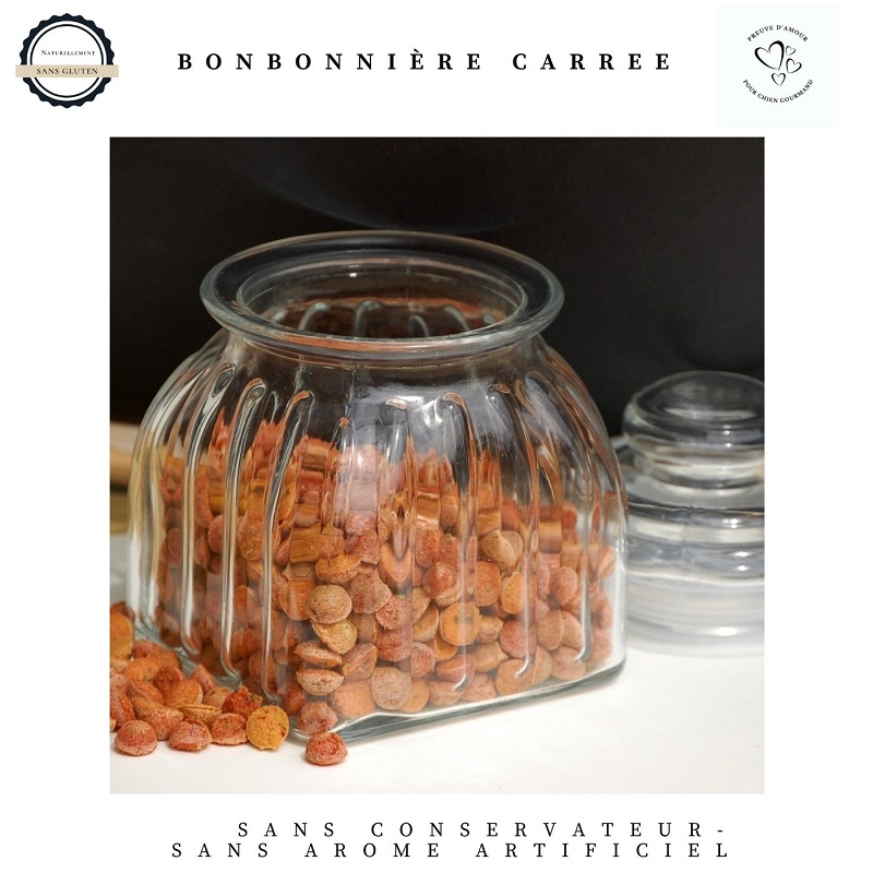 Bonbonnière carrée et gourmandises naturelles pour chiens