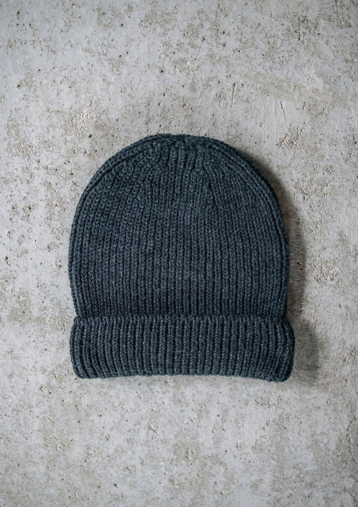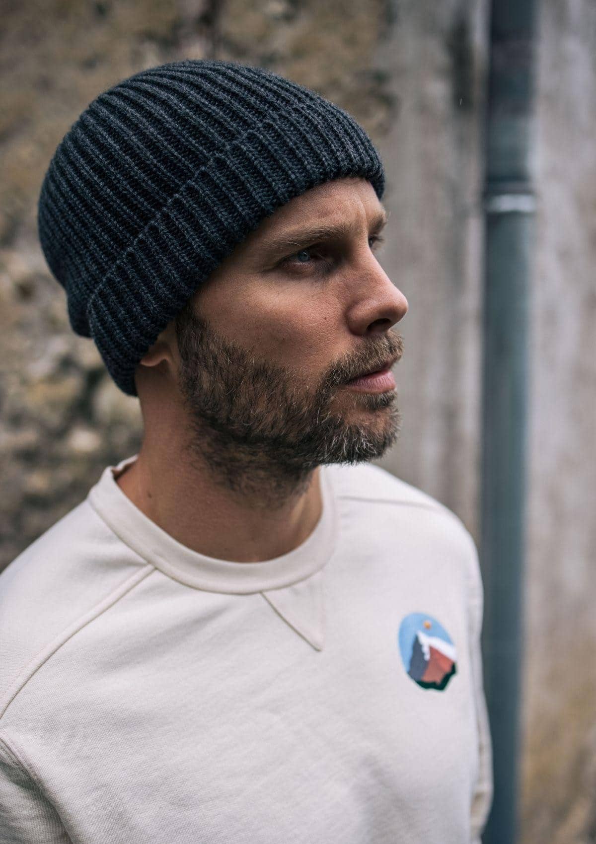 Bonnet en laine mérinos recyclée entièrement tricoté en France.