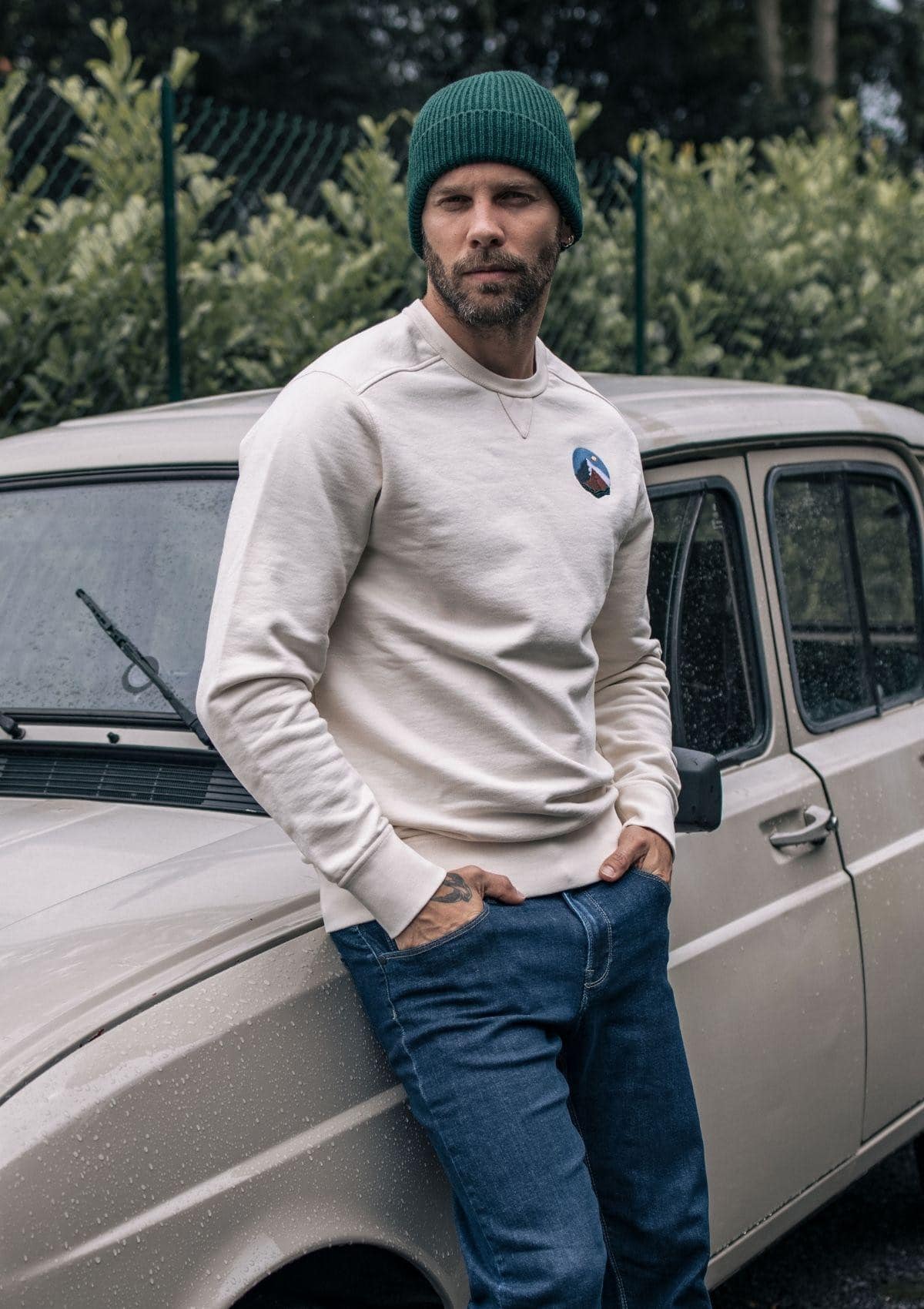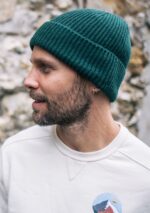 Bonnet en laine mérinos recyclée, entièrement tricoté en France.