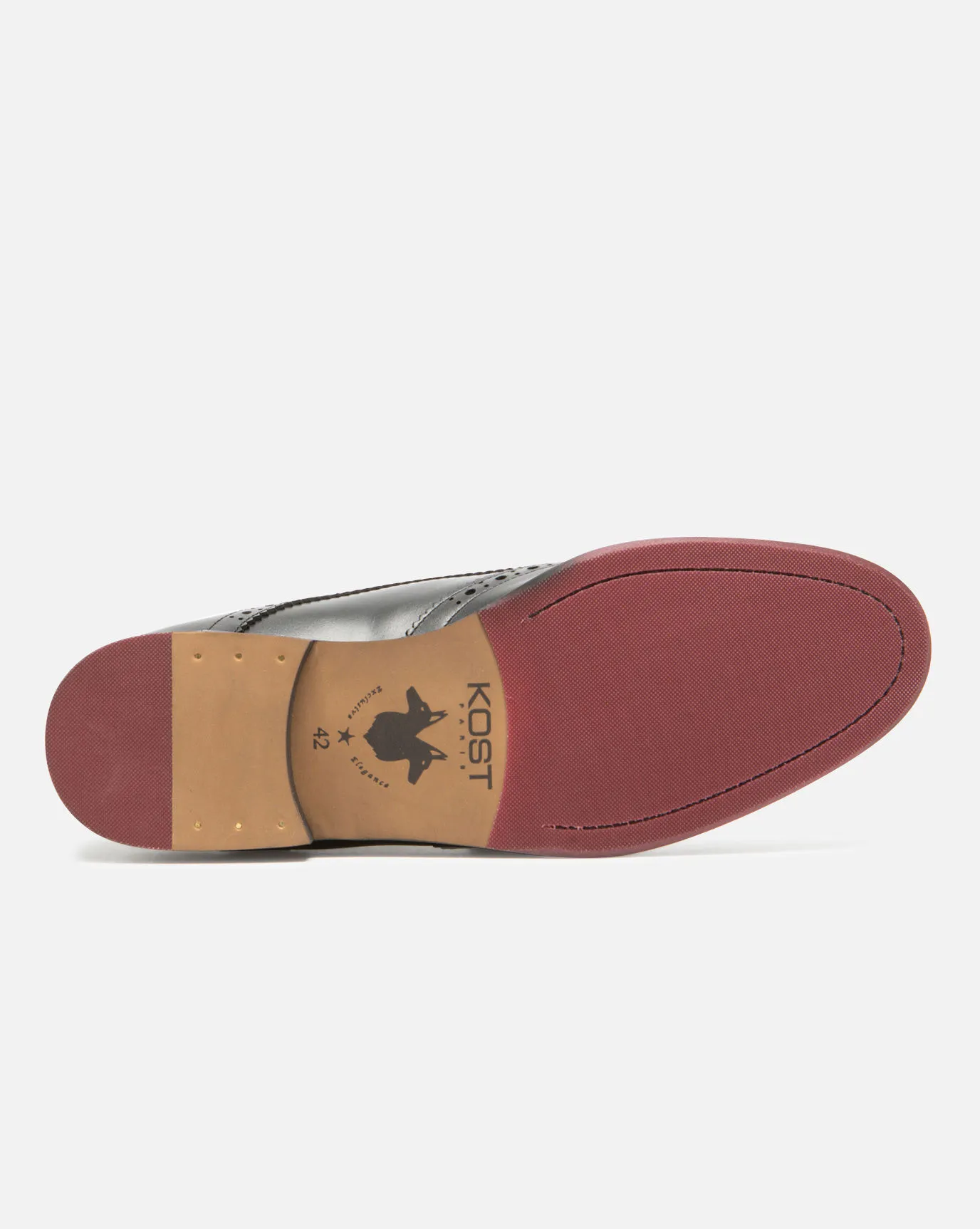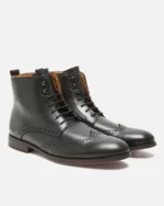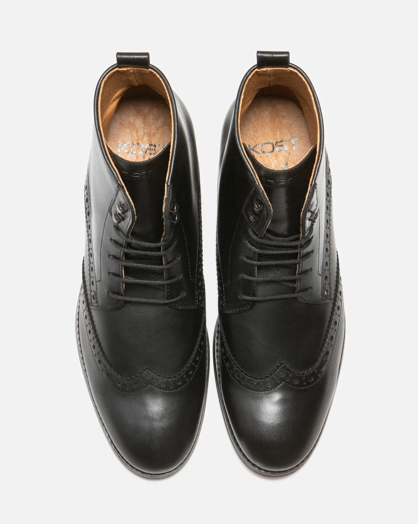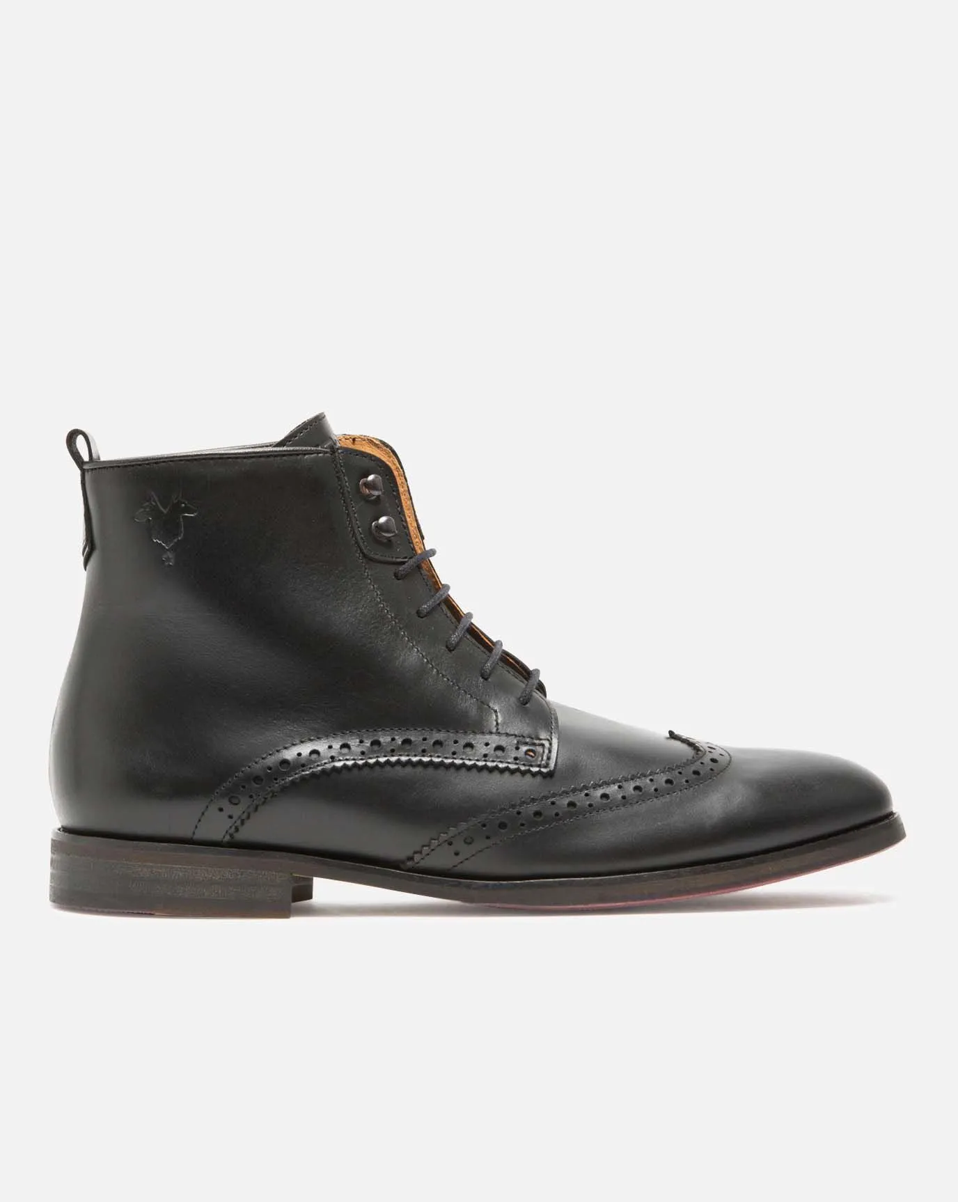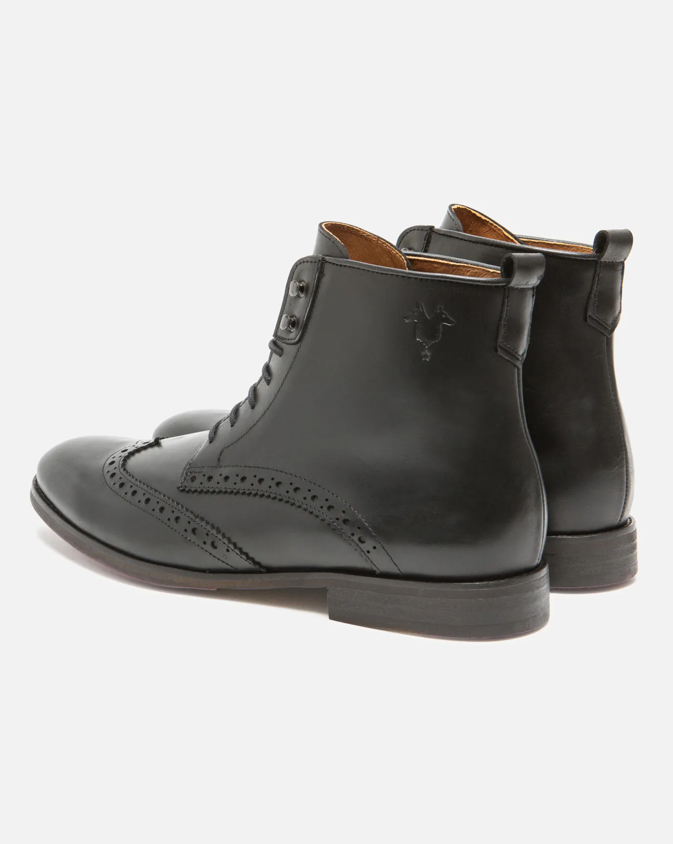 Boots en cuir tannage végétal de couleur noire. La semelle intérieur est également en cuir. La semelle extérieur est en gomme avec patin.