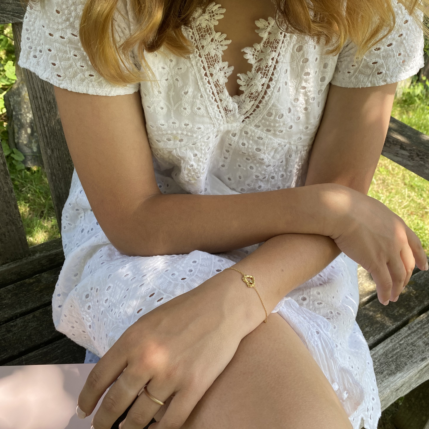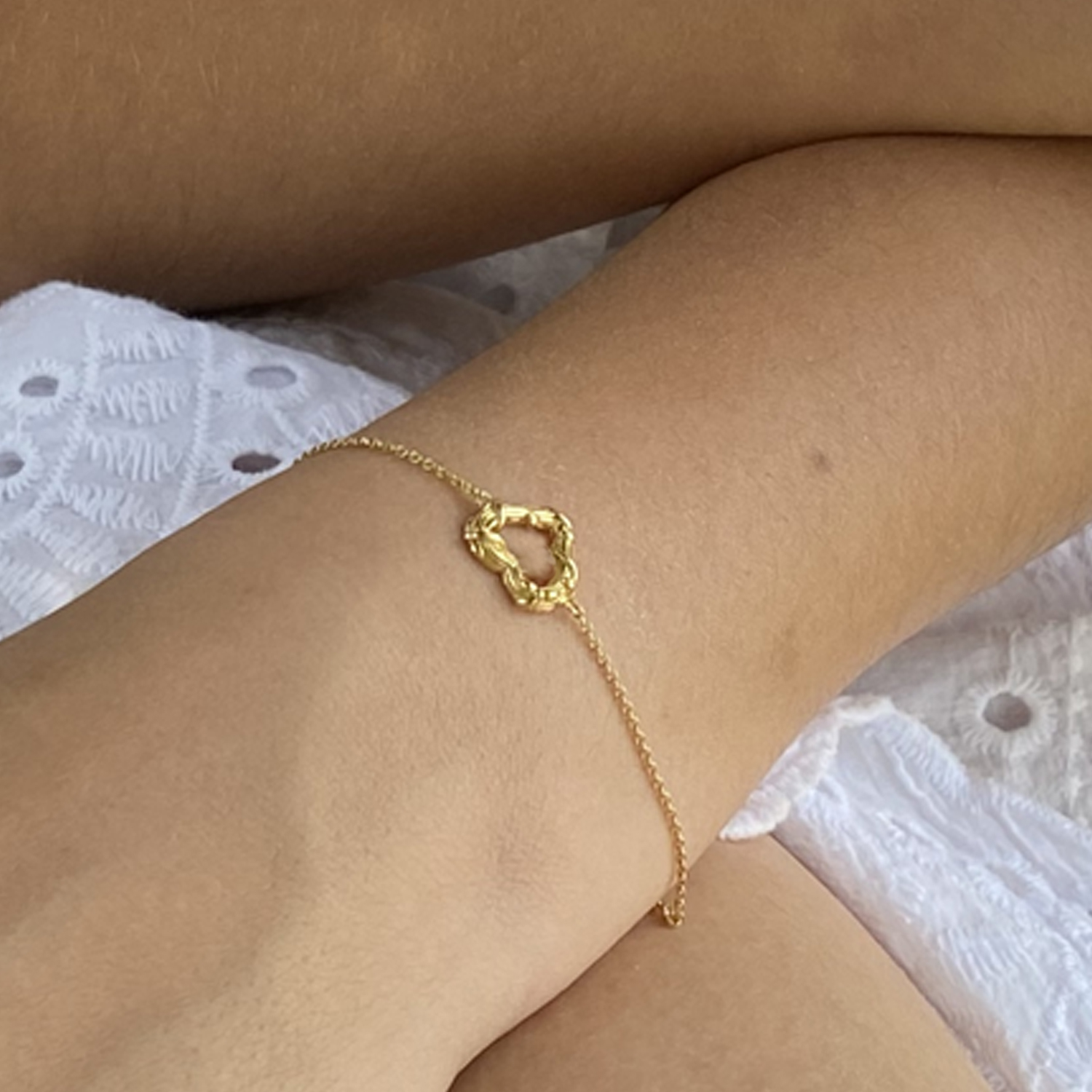Bracelet en argent recyclé 925/1000, motif ciselé Coeur Ø 12 mm, maille forçat longueur 18 cm avec anneau de mise à taille, fermoir mousqueton