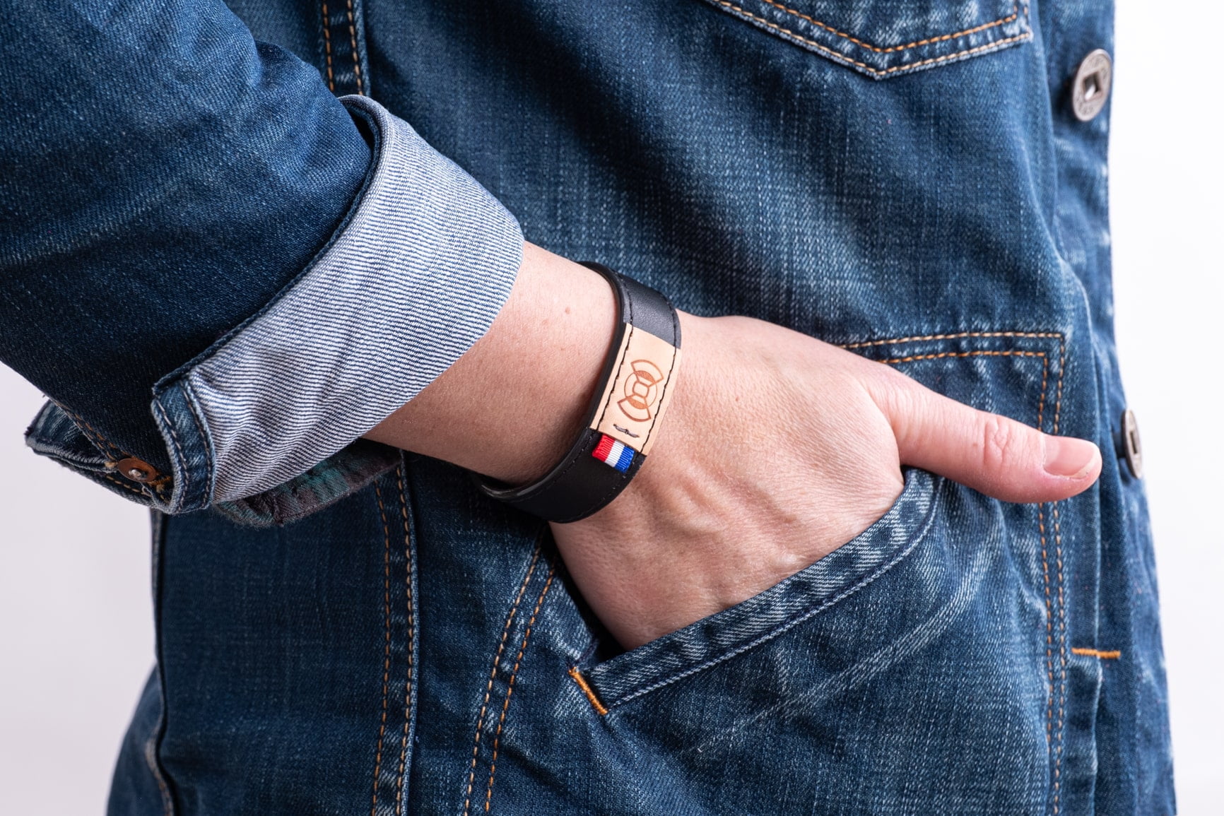 Bracelet en cuir upcyclé et fabriqué à Romans-sur-Isère.