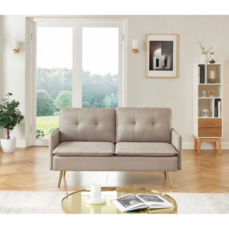 Avec son revêtement en tissu grège le canapé 2 places a tout pour plaire ! Son piètement très en vogue en métal doré apportera une touche d’élégance à votre intérieur. N’hésitez plus et laissez-vous séduire par l’association du tissu et du métal qui créeront une ambiance vintage.