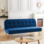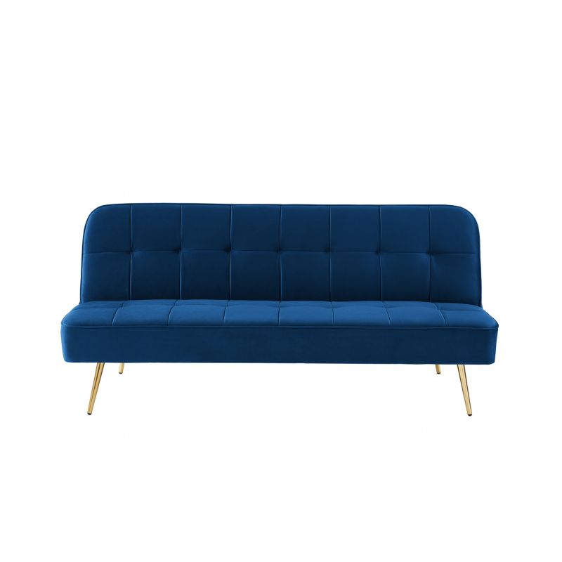 Canapé 3 places convertible en velours bleu nuit pied doré