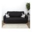 Le canapé est assorti de 2 coussins qui matchent totalement avec la couleur. L’assise, en tissu, est très confortable et permet d’accueillir 3 personnes.