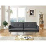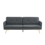 Canapé convertible 3 places en tissus gris anthracite pied métal doré