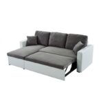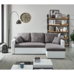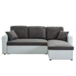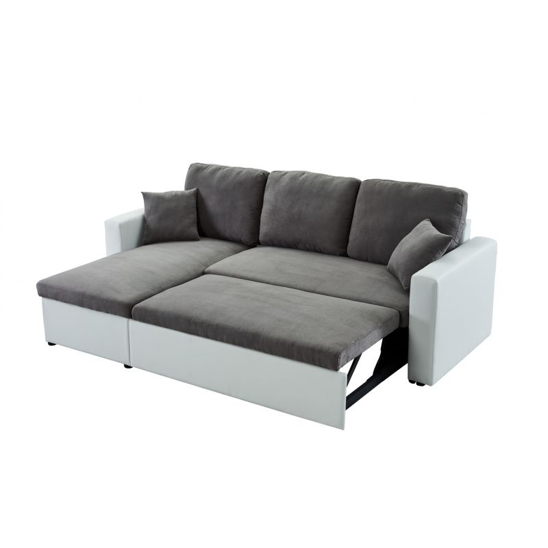 Canapé d’angle convertible et réversible en pu blanc et tissu gris