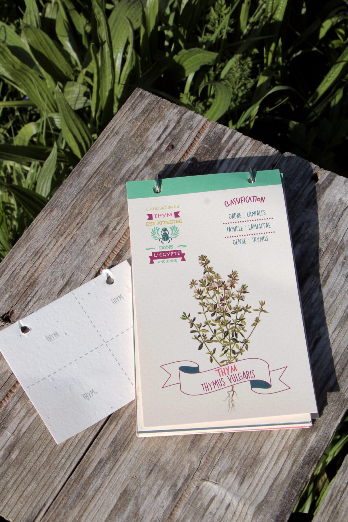 Ce carnet aromatique est l’allié de tous les amateurs de jardinerie. Grâce à ces fiches, (re)découvrez les différentes plantes aromatiques et apprenez à les reconnaître sans avoir besoin de demander à votre téléphone. Thym, basilic, marjolaine, origan n’auront plus de secrets pour vous. En plus, des carrés de papier ensemencé y sont intégrés pour vous permettre de les semer. Creusez, plantez, rebouchez, arrosez et… laissez la nature prendre le relais ! Vous devriez voir les premiers résultats au bout de quelques jours.