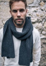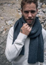 Écharpe unie en matière 100% recyclée et en laine mérinos. Maille anglaise.