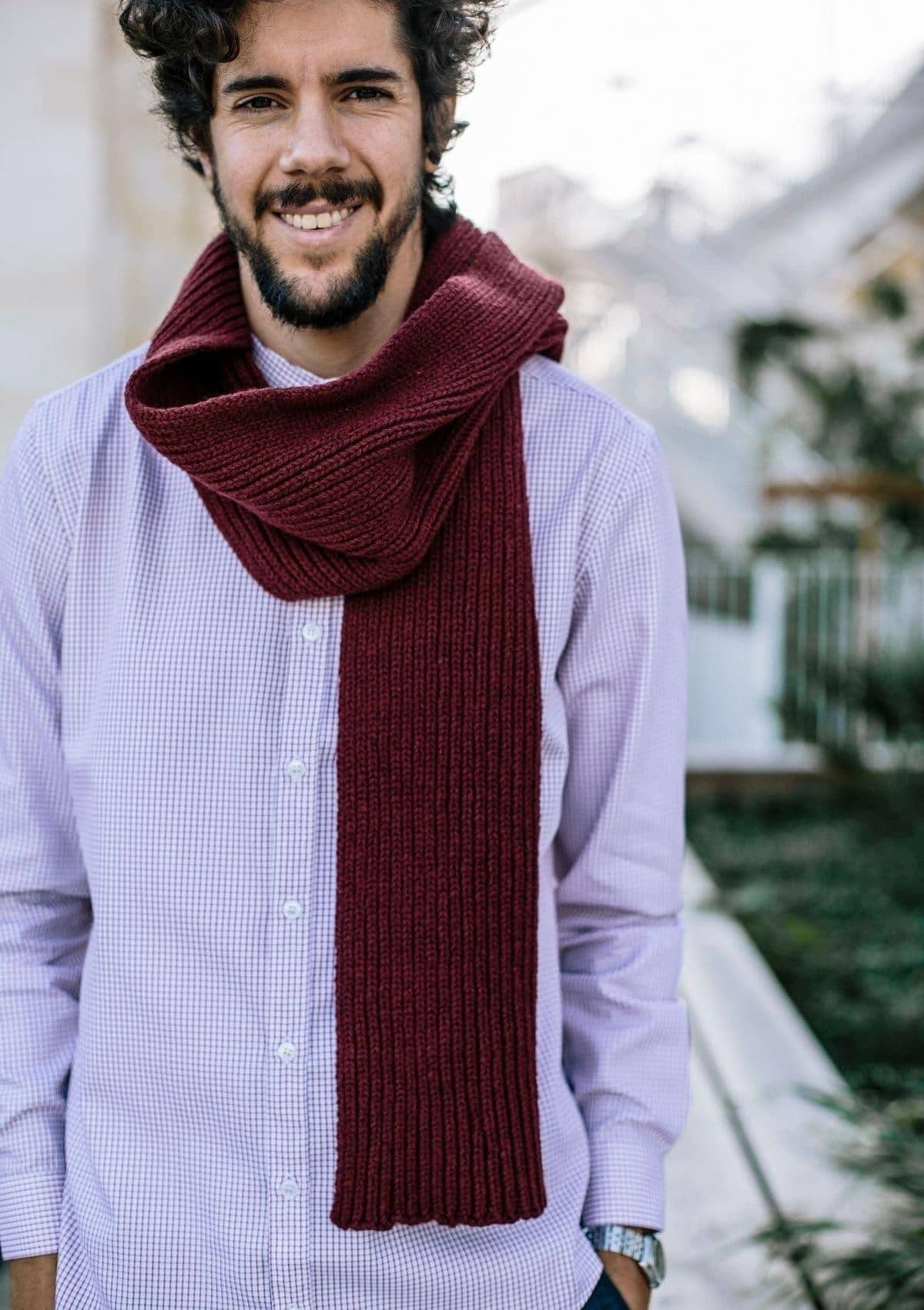 Écharpe unie en matière 100% recyclée et en laine mérinos. Maille anglaise.