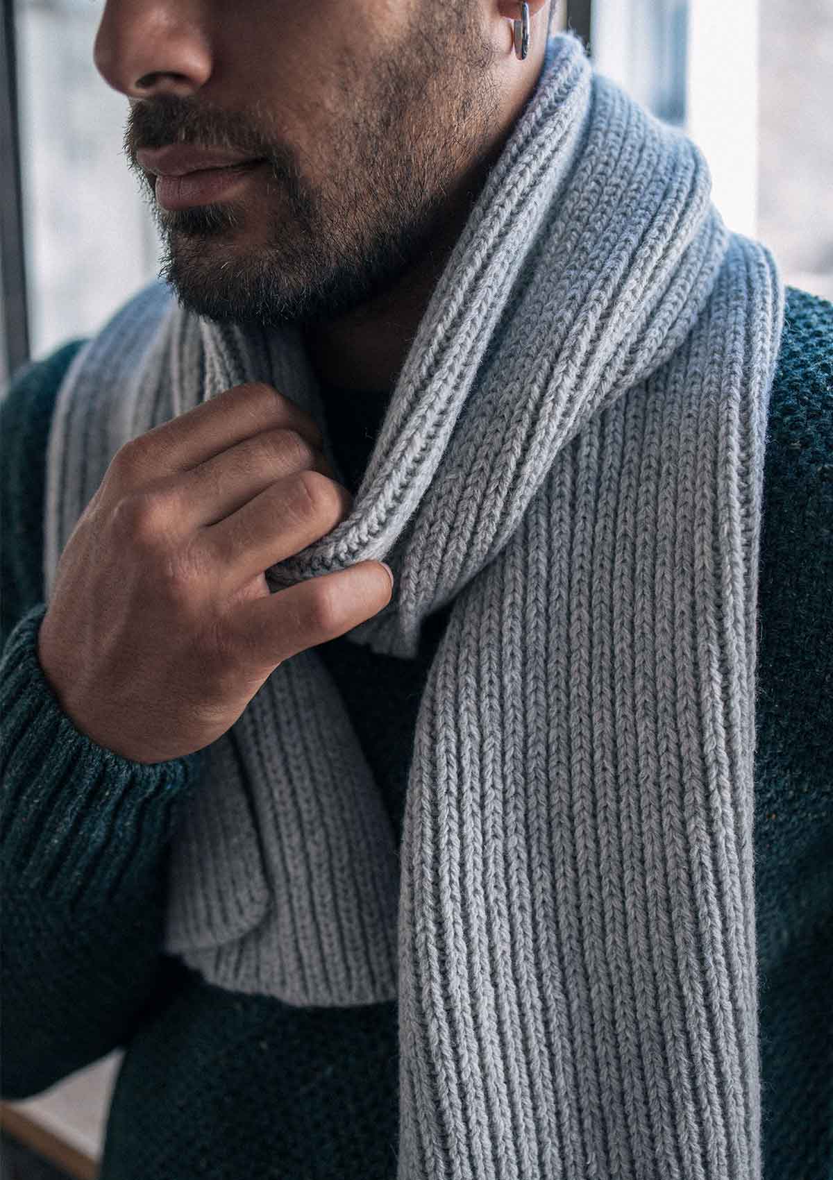 Écharpe unie en matière 100% recyclée et en laine mérinos. Maille anglaise.