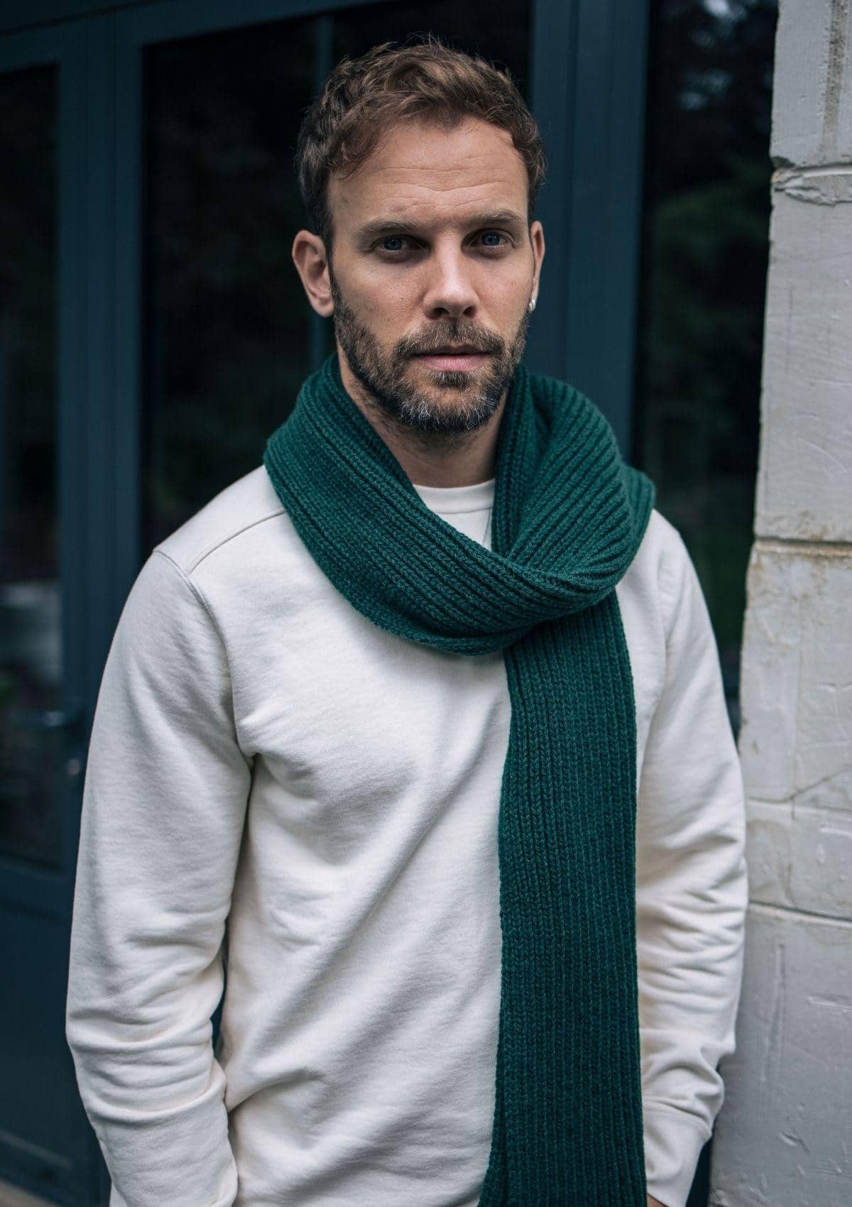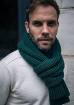 Écharpe unie en matière 100% recyclée et en laine mérinos. Maille anglaise.