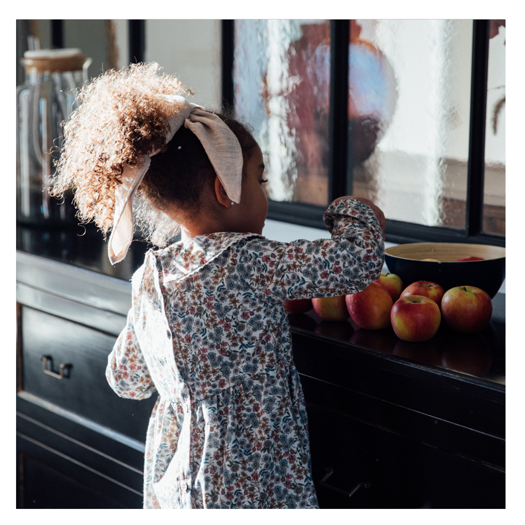 Le conseil de la styliste : Harmonisez ce foulard avec d’autres accessoires enfant tels que des barrettes charmantes ou des broches délicates, afin de composer des ensembles uniques et à la mode. Que vous le nouiez gracieusement dans les cheveux, l’attachiez élégamment autour du cou ou le fixiez avec style sur un sac, ce foulard deviendra l’élément indispensable pour apporter une touche raffinée à la garde-robe automne-hiver de votre enfant.