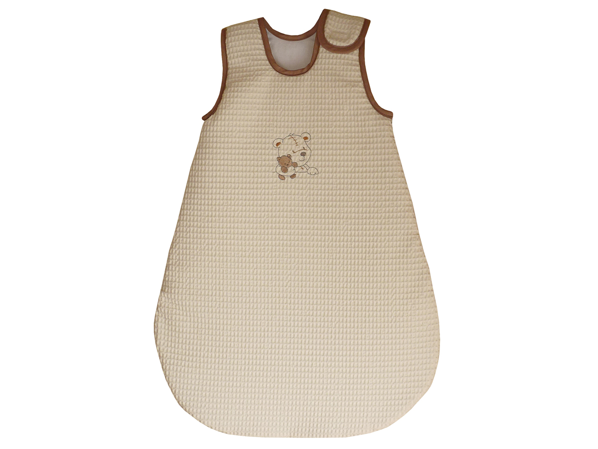 Un adorable ourson et son doudou… On aime cette gigoteuse personnalisable de belle qualité et réalisée dans un tissu très agréable à porter. Chaleur douce et finitions soignées, de couleur naturelle ou blanche. Idéale pour le sommeil des touts-petits, une gigoteuse les réchauffe en toute sécurité. Broderie : Ourson.