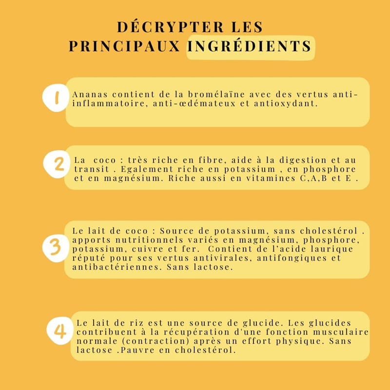 Pourquoi choisir ce parfum ?? la coco est riche en fibre, elle est également connue pour ses propriétés sur la peau et le poil . L’ananas est riche en fibre et pauvre en calories. Ces composés lui confèrent des propriétés anti-inflammatoires, anti-oxydantes, diurétiques .