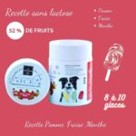 Tube préparation glace pour chien Pomme/ Fraise/ Menthe poivrée, minium 50 % de fruits au total , riche en supers aliments bénéfiques pour votre chien .