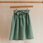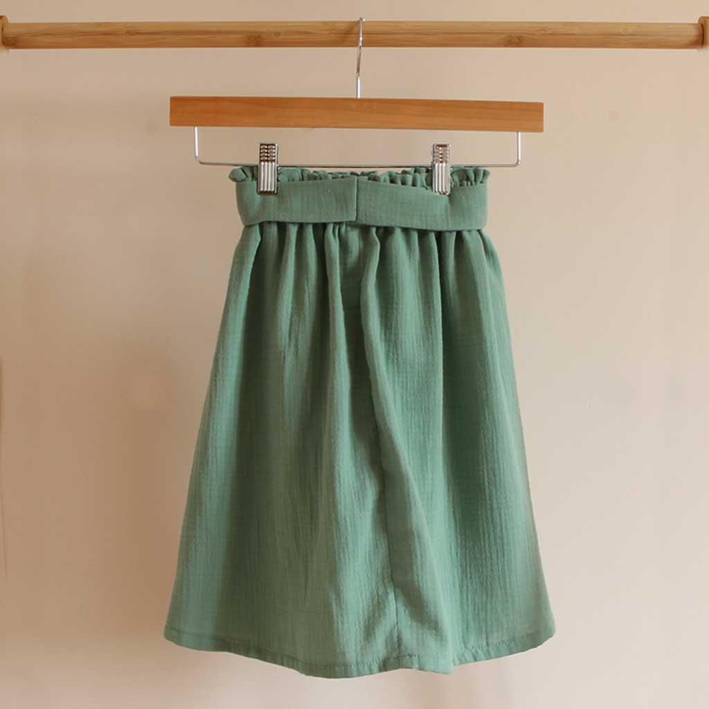 Cette jupe longue fille est confectionnée dans un tissu double gaze de coton bio tout doux, couleur vert menthe.