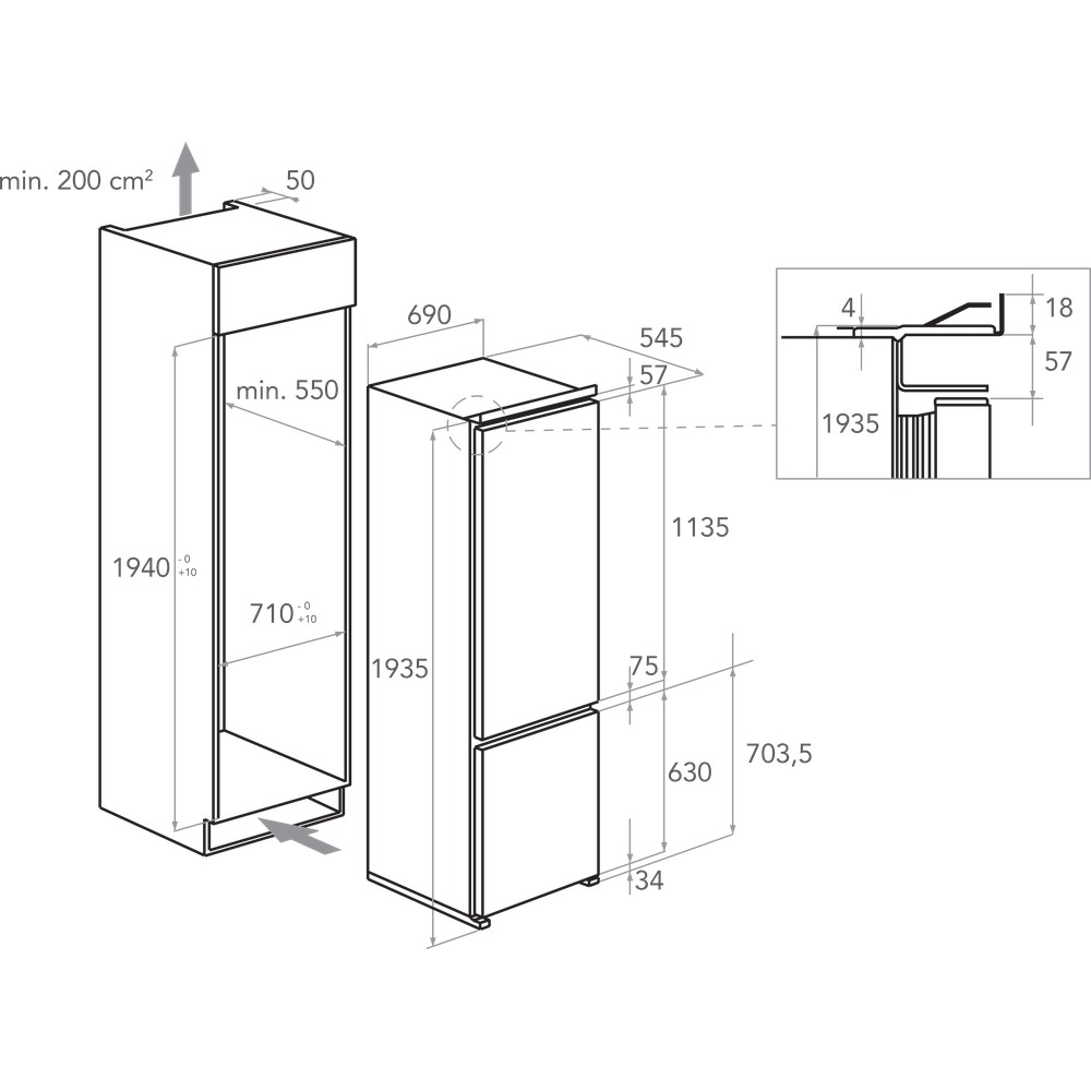 KITCHENAID PRO A++ -RÉFRIGÉRATEUR COMBINÉ INTÉGRABLE 70cm