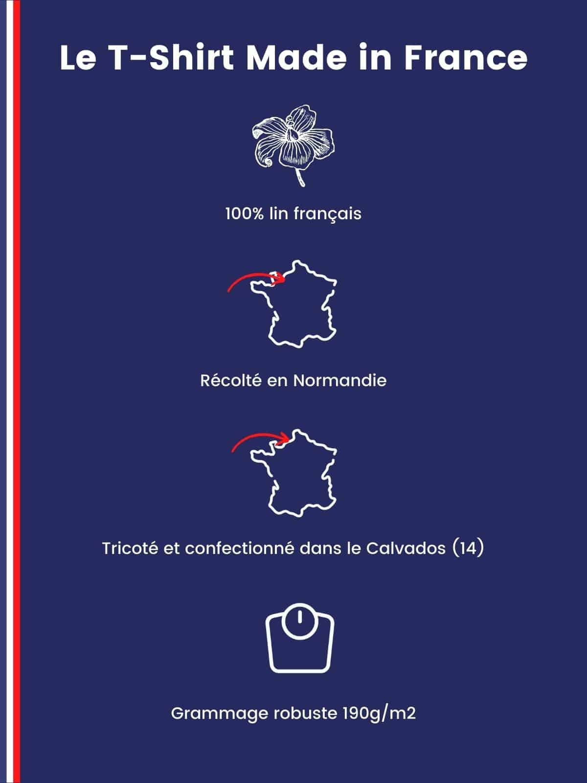 Notre t-shirt lin se décline avec un nouveau coloris rouge bordeaux. Idéal pour rester au frais l’été avec sa matière aérée, notre t-shirt en lin rouge a une coupe légèrement ajustée pour mettre en valeur votre silhouette sans vous mouler. Détails, fabrication et qualité > tout savoir sur nos t-shirts en lin. Cultivé, récolté et confectionné en Normandie par une filière textile locale, bio et coopérative.