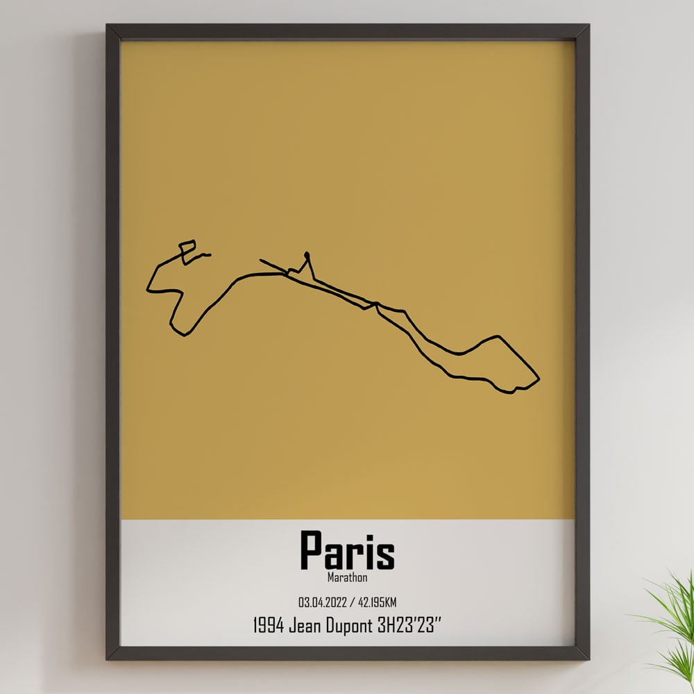 Cette affiche « contemporaine » de la trace du marathon de Paris est imprimée sur du papier 100% recyclé . Pour créer une affiche personnelle et unique, ajoutez votre nom, votre numéro de dossard et votre temps d’arrivée. Vous pouvez le faire dans les champs de texte disponibles. Toutes nos affiches sont conçues en France , dans le Rhône Alpes. Nous faisons imprimer nos commandes dans une imprimerie Lyonnaise. Voici les différentes tailles disponibles : A3 (29,7 x 42 cm) A4 (21,1 x 29,7 cm) A6 (10,5 x 14,8 cm) *Les cadres et autres décorations visibles sur nos photos sont exclus. Les couleurs sur votre écran peuvent varier un peu des couleurs réelles imprimées.