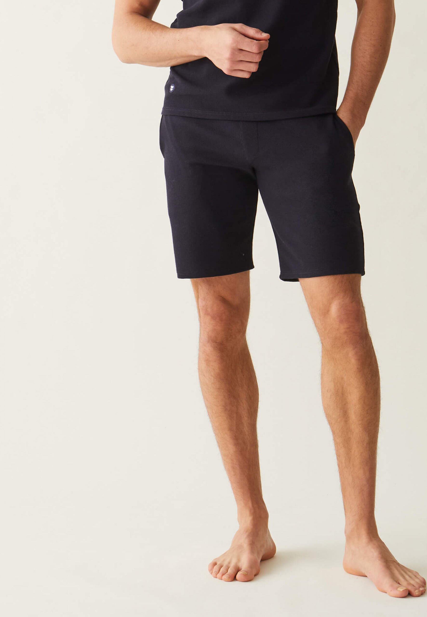 Marc Olivier est un short de pyjama long en coton bio texturé pour un effet gaufré. Peut s’associer au Marc André ou en décoordonné avec le t-shirt Jeannot.