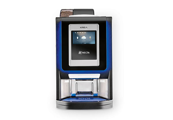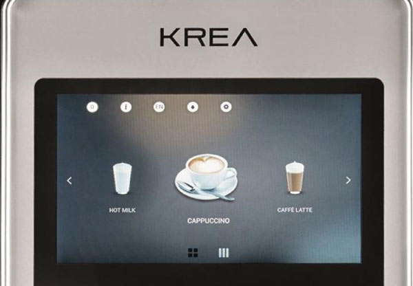 Krea Touch est le nouveau modèle élégant qui vient enrichir la famille Horeca de Necta. Son design attractif, son éclairage décoratif, ses cadres chromés et ses surfaces noires brillantes associées à ses performances inégalées font de Krea Touch la solution idéale pour votre pause-café. Son large écran tactile et son interface conviviale offrent un grand nombre de sélections, une gestion des recettes flexible et personnalisée, une identification des marques de torréfacteurs et la gestion de vidéos et d’actions commerciales.