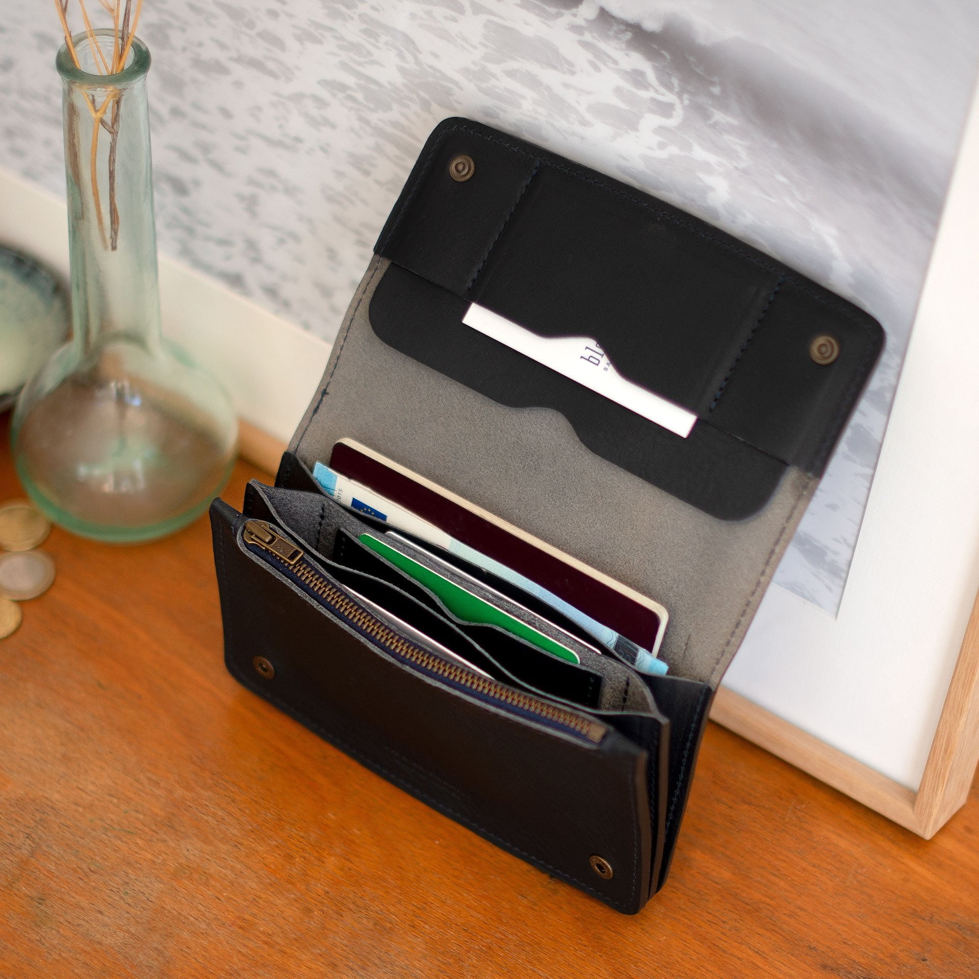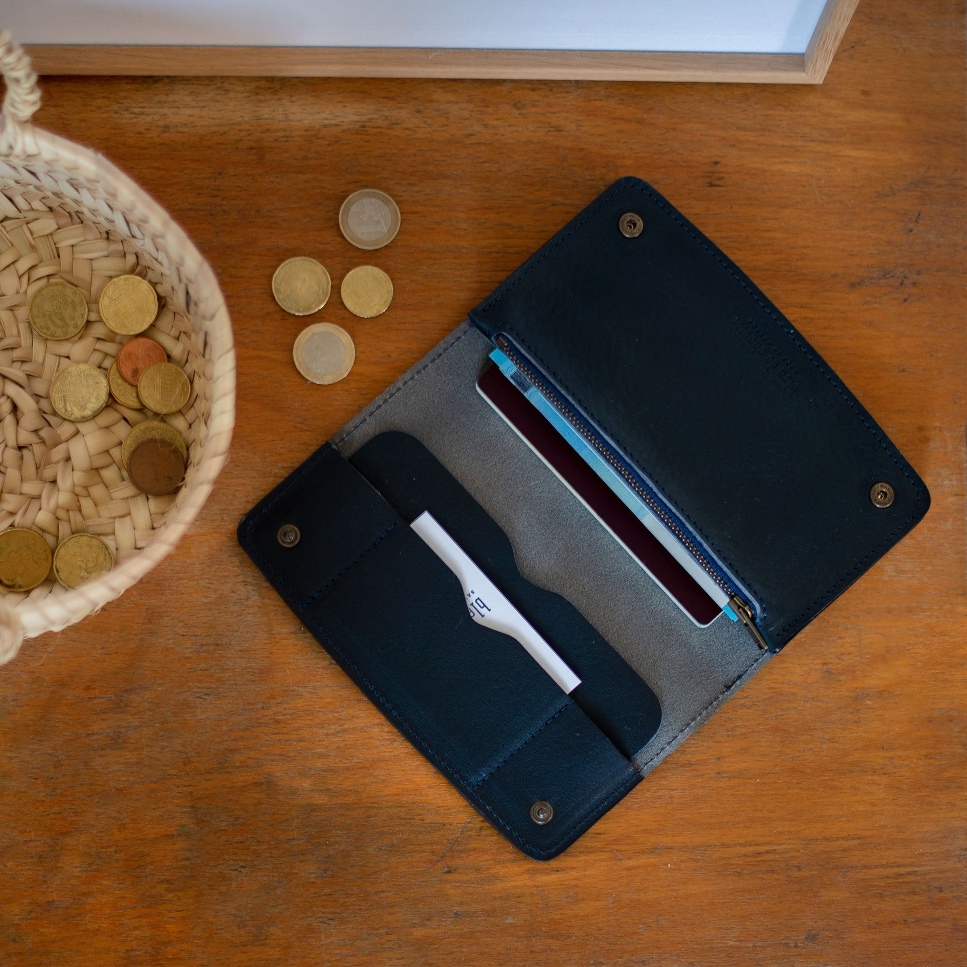 Découvrez le Portefeuille tout en un, en Cuir Maltese – Caban – Fabriqué en France – Petite maroquinerie en cuir tanné végétal tendance pour homme et femme en vente sur Bleu de chauffe.