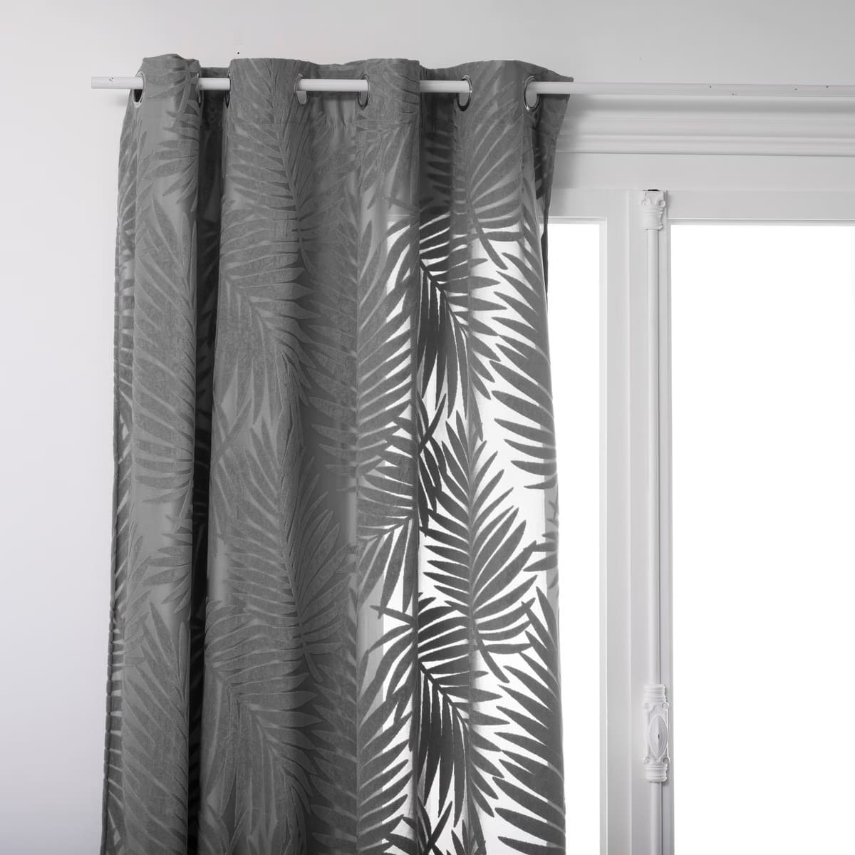 Rideau en velours gris feuille 140×260 (vendu par 1)