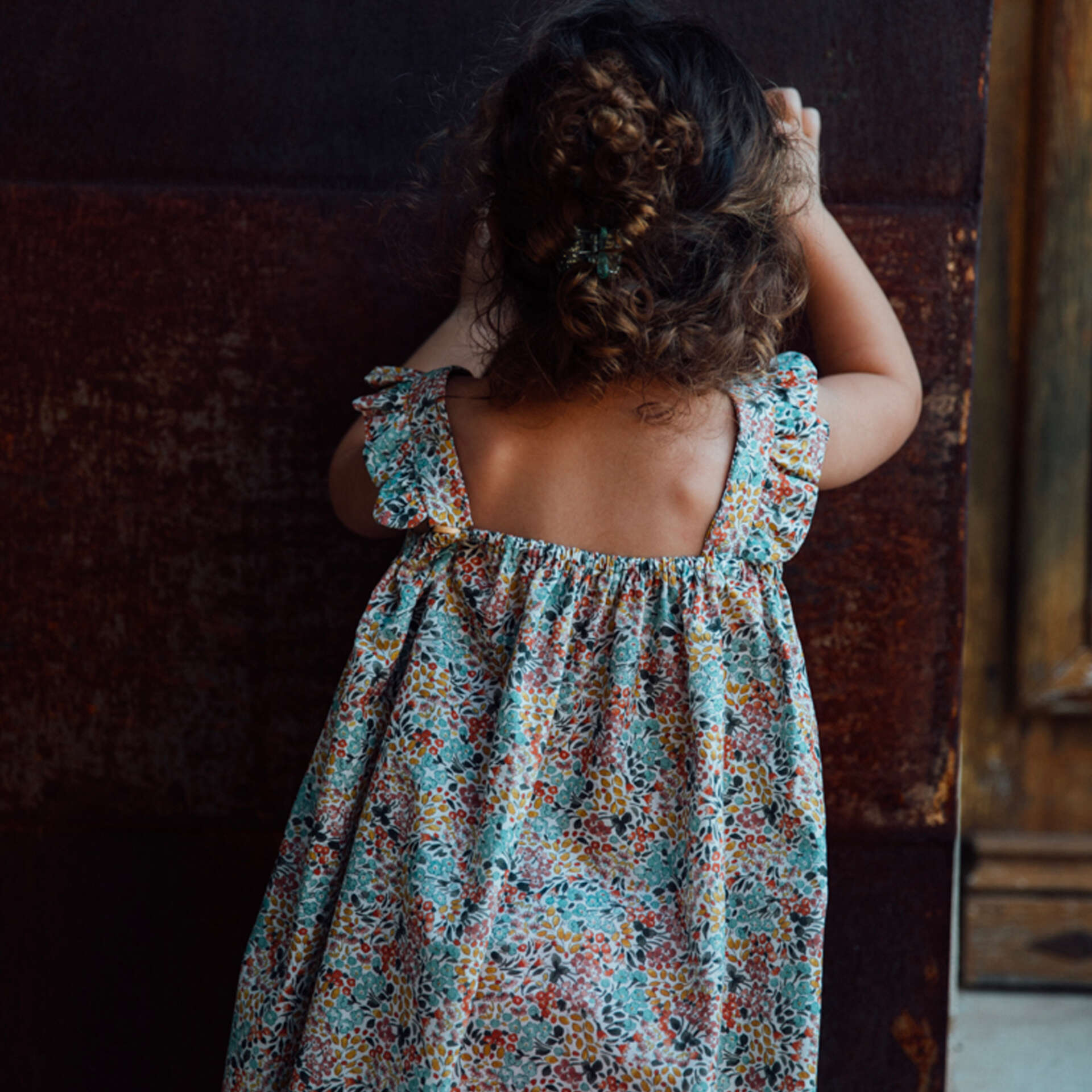 Le motif floral délicat qui orne cette robe évoque la fraîcheur et la poésie des jardins en fleurs au printemps. Les volants gracieux sur les épaules ajoutent une touche de légèreté et de féminité, soulignant la beauté naturelle de votre petite fille avec élégance et subtilité.