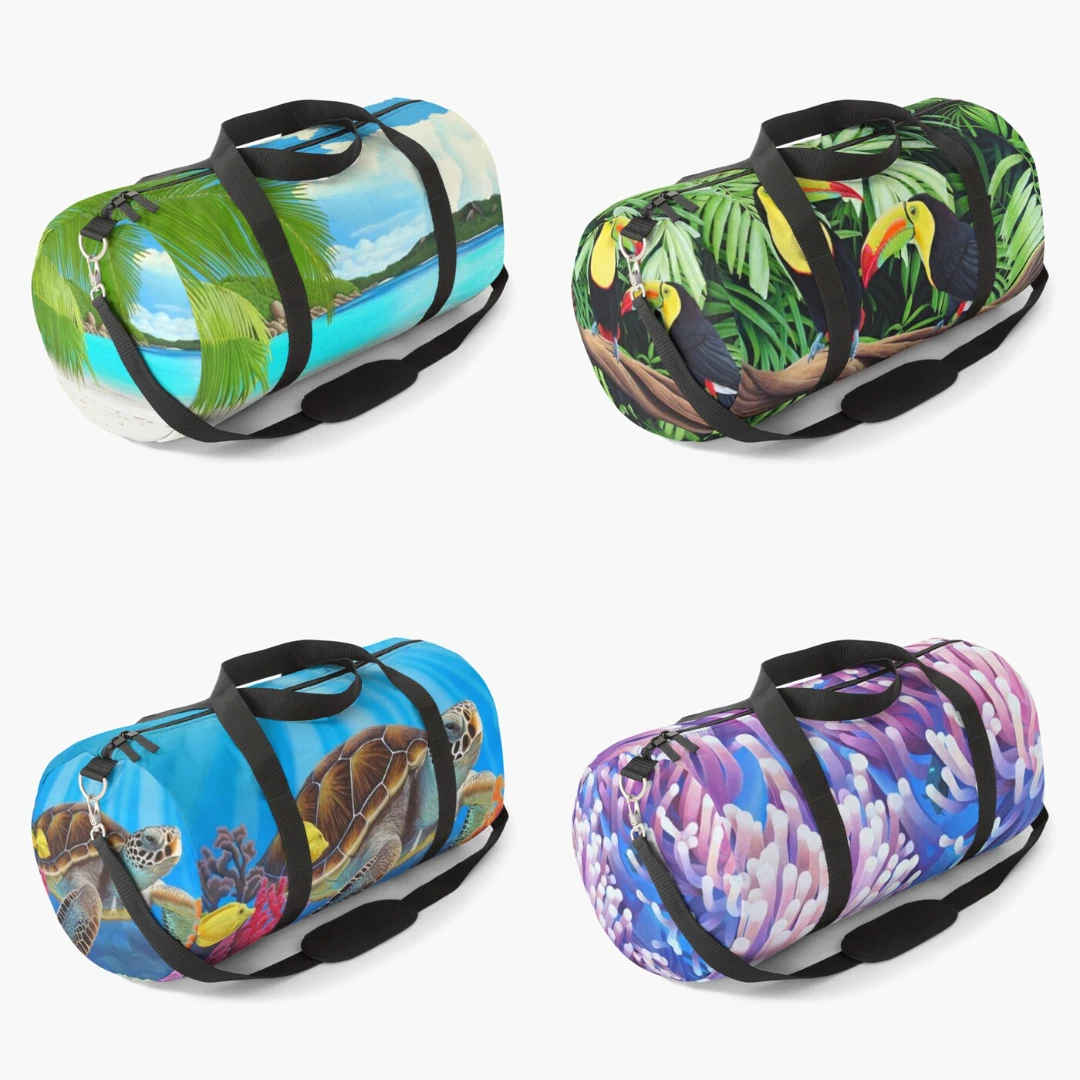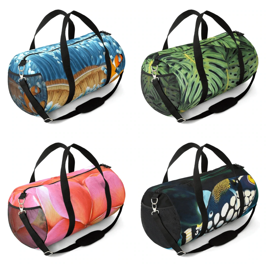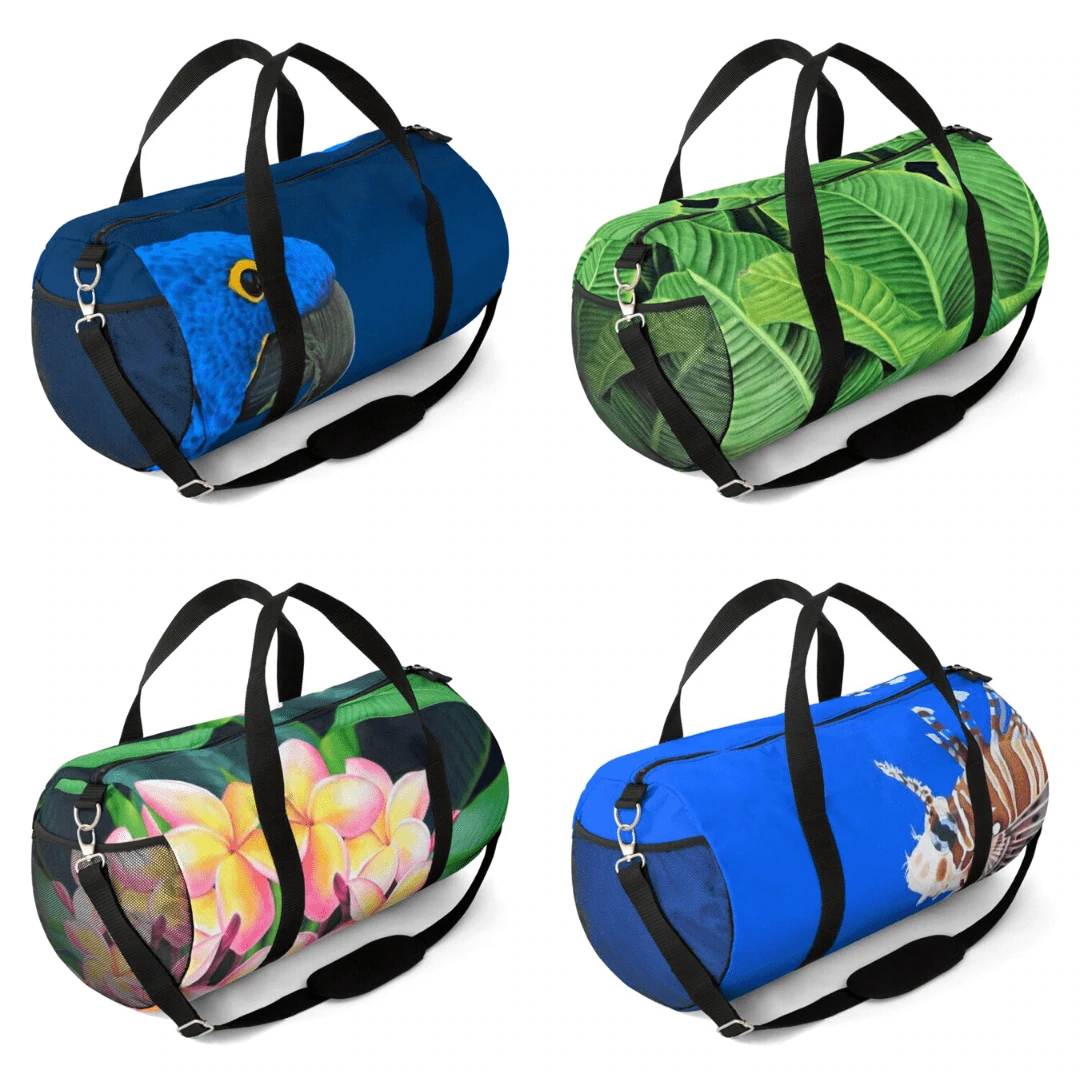 Que vous soyez un voyageur avide ou un sportif passionné, ensoleillez votre style avec un sac unique, orné d’une reproduction fidèle de mes peintures originales inspirées de la nature tropicale et exotique.