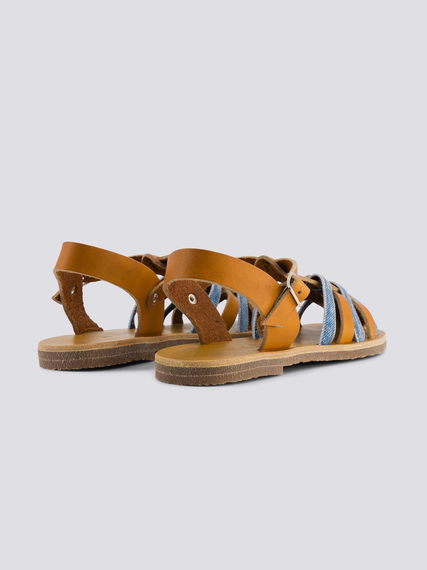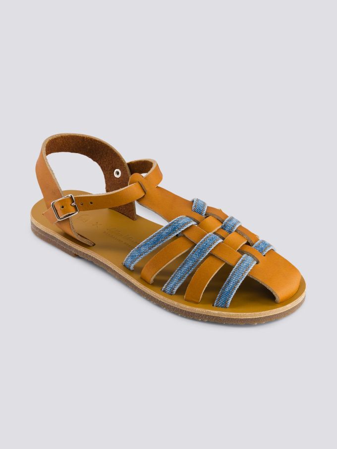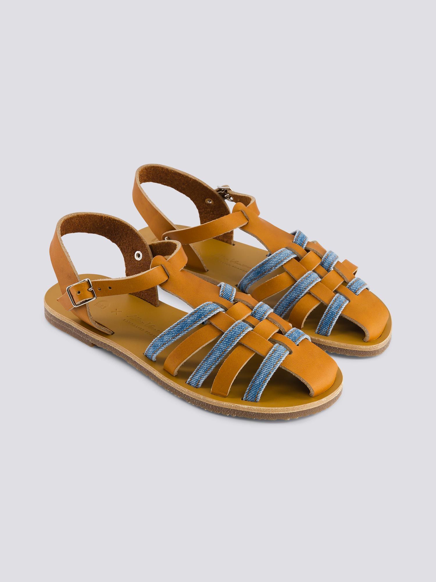 Diane 932, la sandale cuir et denim délavé par 1083 et l’atelier Max Vincent.Un parfait mélange de couleurs entre le camel et le tissu SuperDenim délavé clair de nos jeans ! Avec leur qualité irréprochable et leur mix de matières, cette collaboration est à la croisée de nos deux univers.