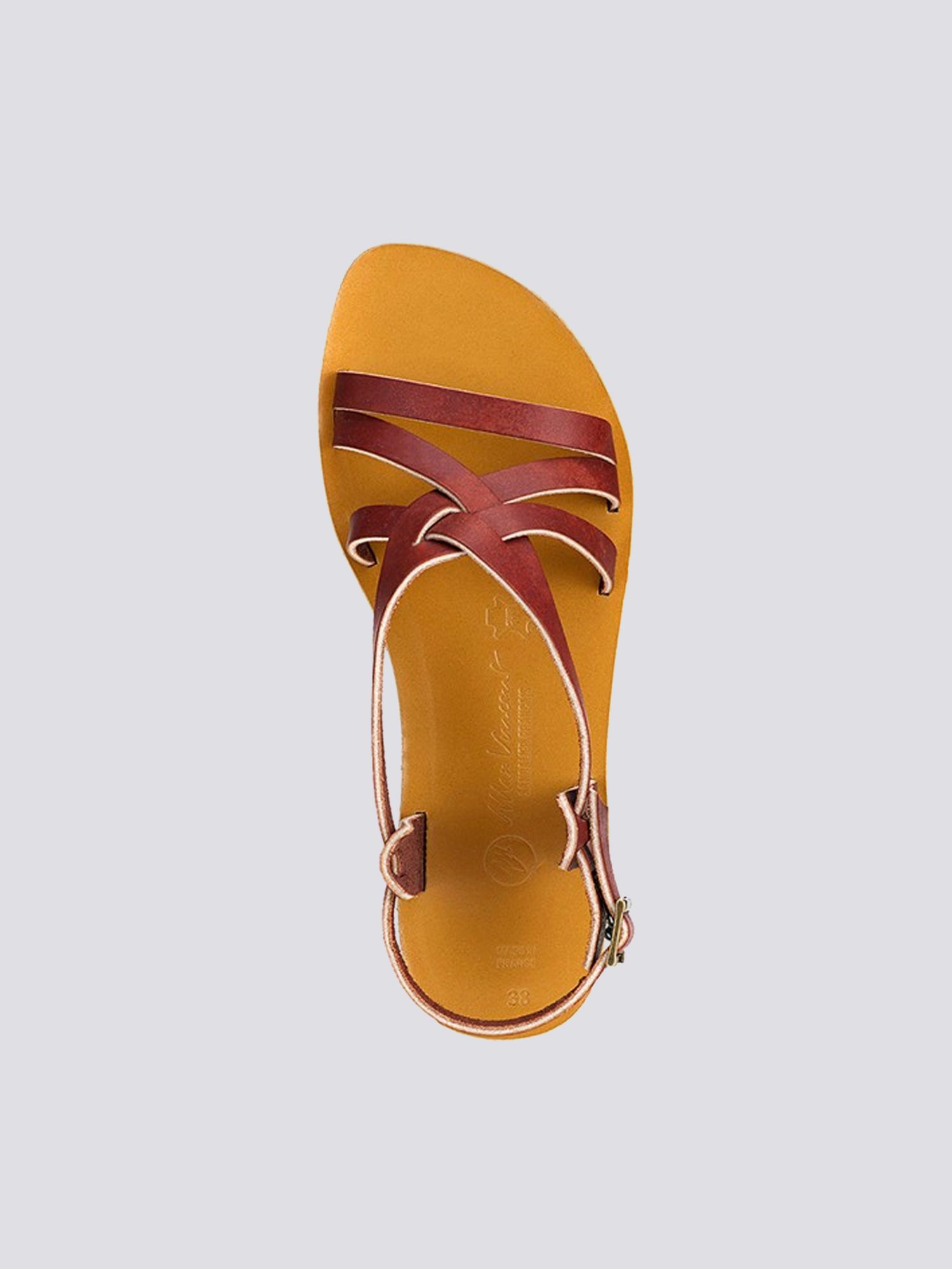 Sandales brides croisees vero cuir tannage vegetal bordeaux femme