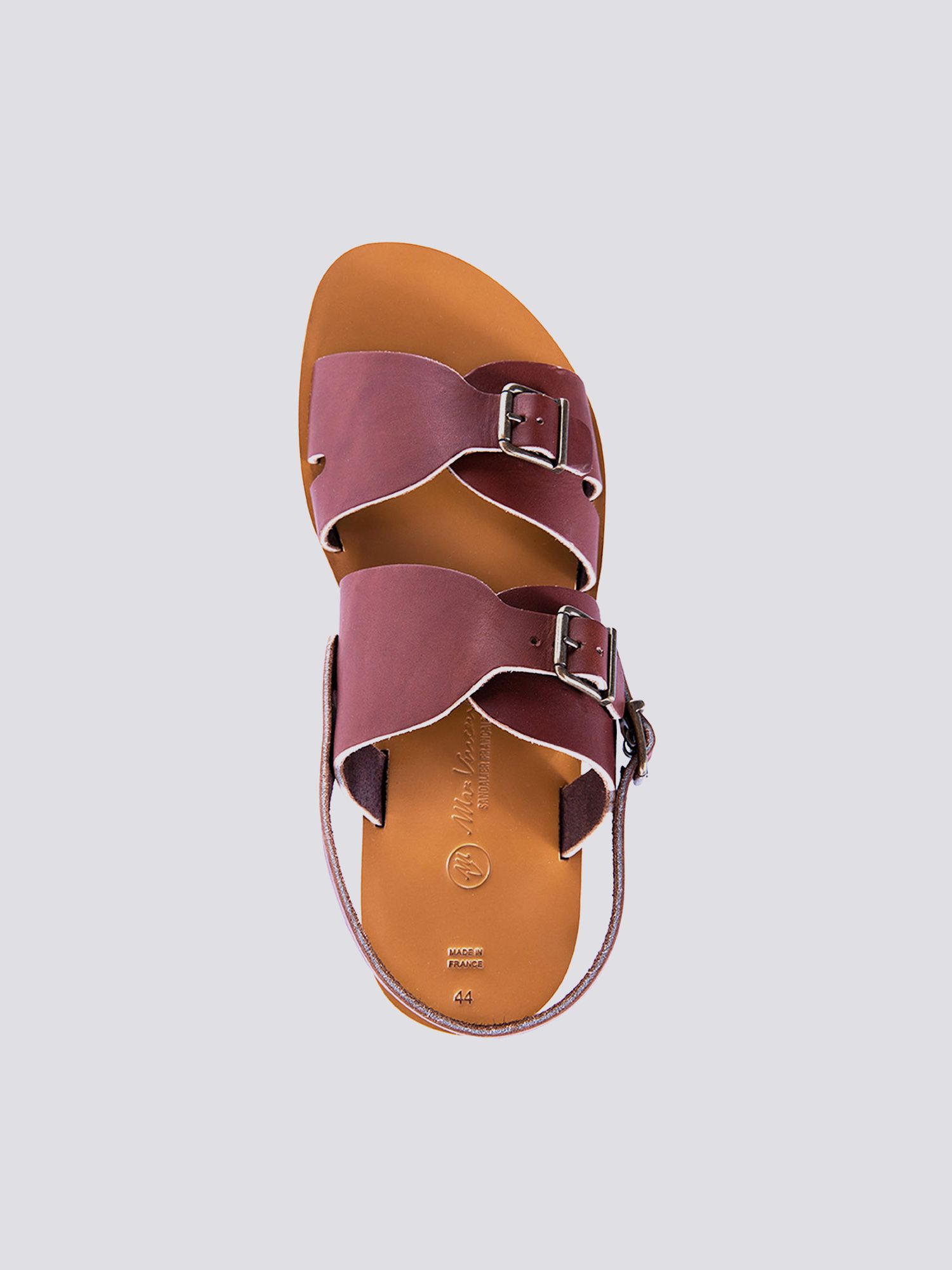 SANDALES DOUBLE BRIDE BAROUD cuir tannage vegetal marron Homme