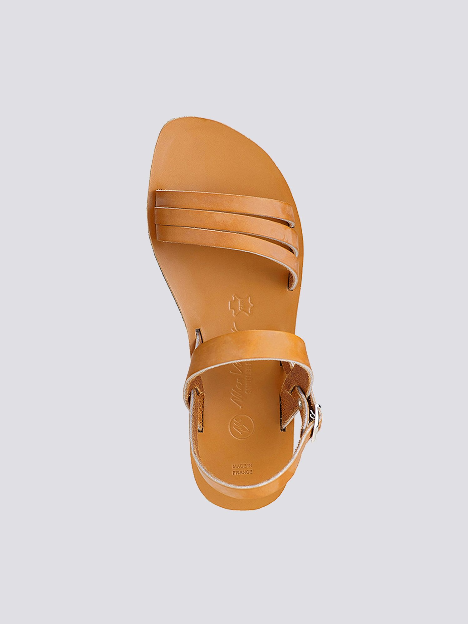 SANDALES DOUBLE BRIDE FLORA cuir tannage vegetal naturel Femme