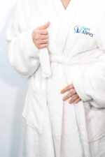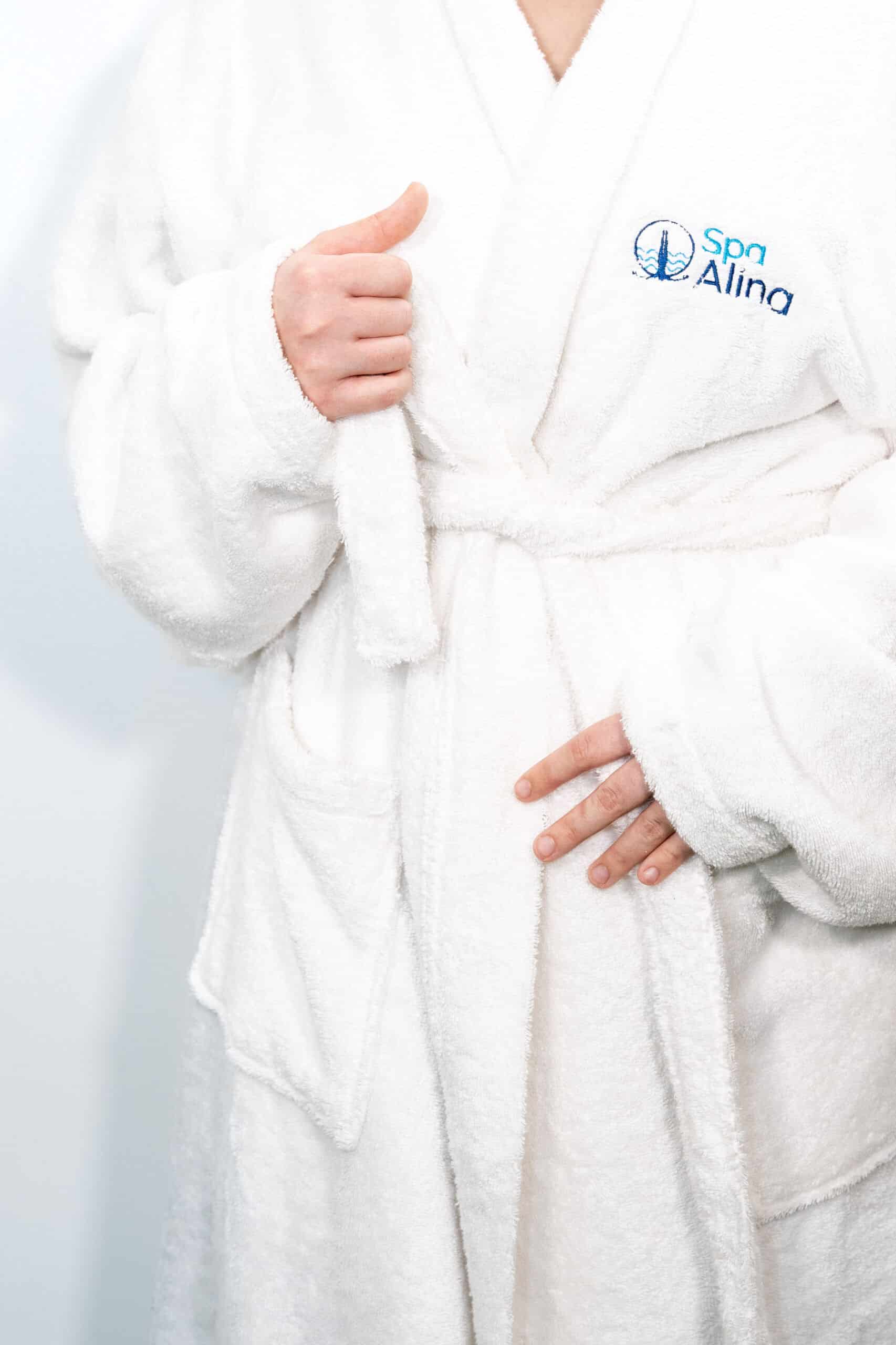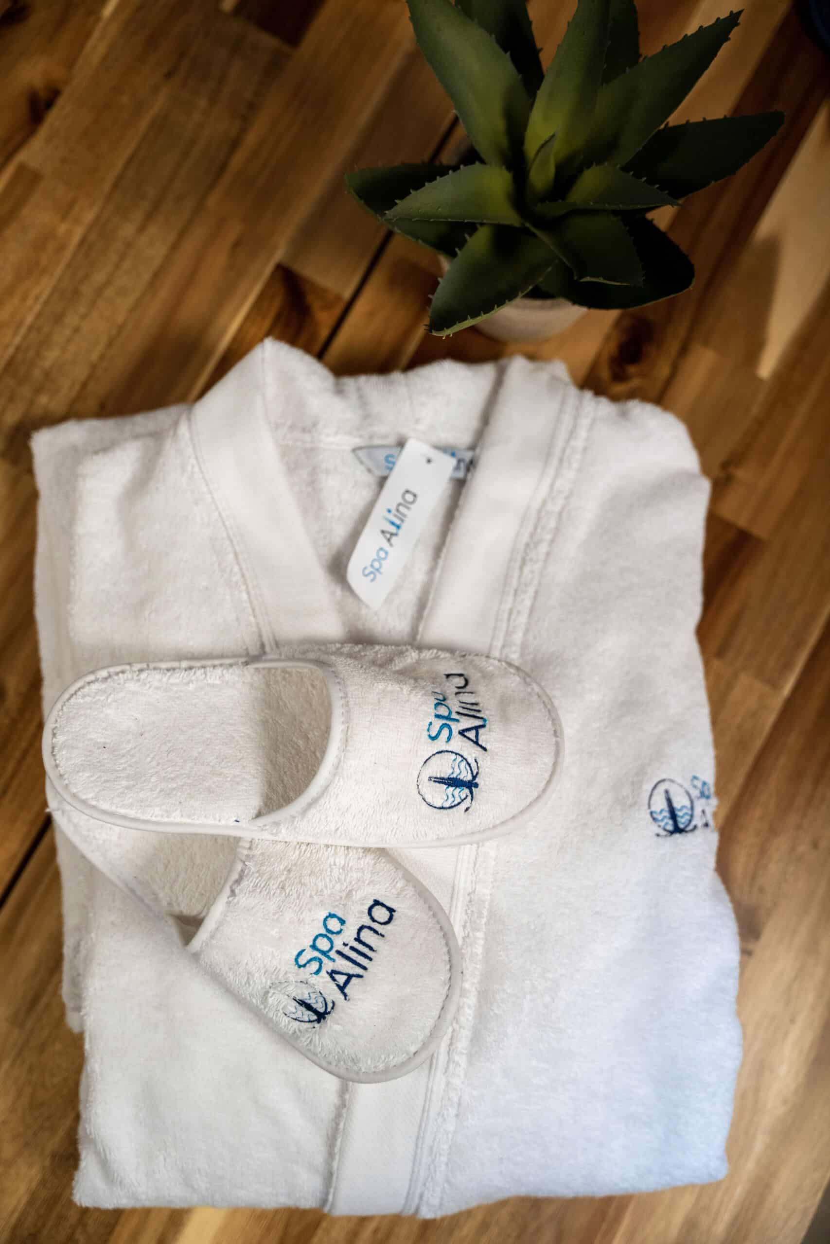 Notre peignoir vous apportera douceur et confort pour votre peau et nos chaussons vous accompagneront avec leur matière absorbante et antidérapante.