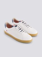 L’iconique 912, la paire de sneakers blanches en cuir ! Avec son talon couleur bleu métallisé, elle s’associe parfaitement avec votre jeans 1083. Nos sneakers 912 sont conçues pour être aussi confortables que résistantes, de leur doublure en coton jusqu’à leurs lacets en lin.