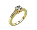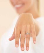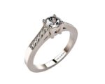 Déclinée avec un diamant de taille discrète, cette bague solitaire diamant rejoint notre grande famille des bagues de fiançailles de tradition avec son double corps et son anneau à palmettes.