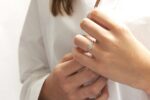 Une bague diamant en or éthique 18 carats présentée sur une monture originale qui sait rester discrète