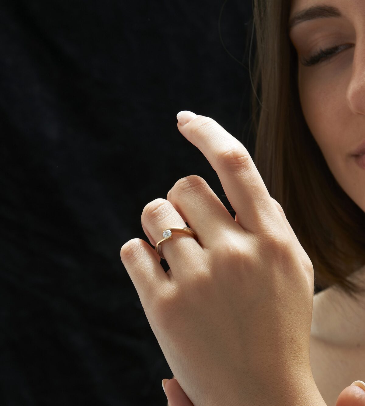 Une bague diamant sur un anneau double qui garde toute sa finesse