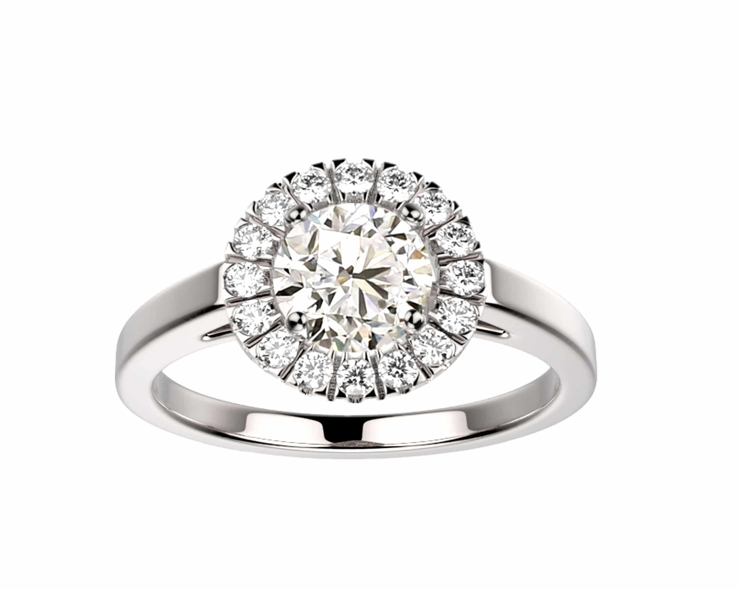 – Un solitaire romantique avec son diamant entouré d’une couronne de diamant