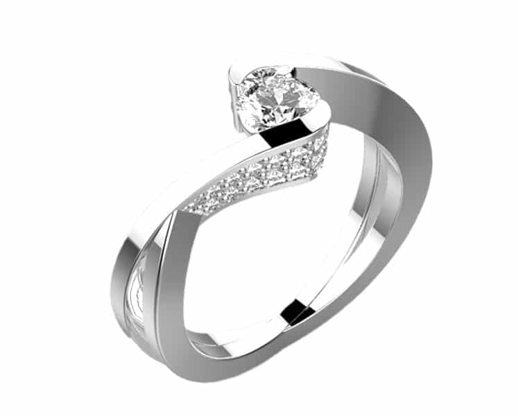 Un solitaire diamant dont la monture présente une délicate originalité avec son anneau double et pavé