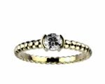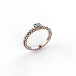 - Un solitaire diamant à l’anneau perlé. Les perles sont un incontournable en joaillerie. Leur miroitement apporte une touche de glamour sophistiqué au diamant sagement lové dans son serti semi-clos
