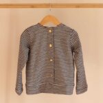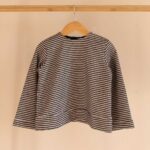 Ce sweat bébé est confectionnée dans un tissu piqué de coton épais, avec de jolies rayures blanches et marine. Il s’agit d’une matière recyclé ! 100% ECO-RESPONSABLE : 85% coton organique – 15% PES recyclé.
