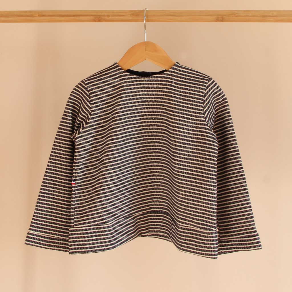 Sweat en coton épais avec de jolies rayures marine et blanches.